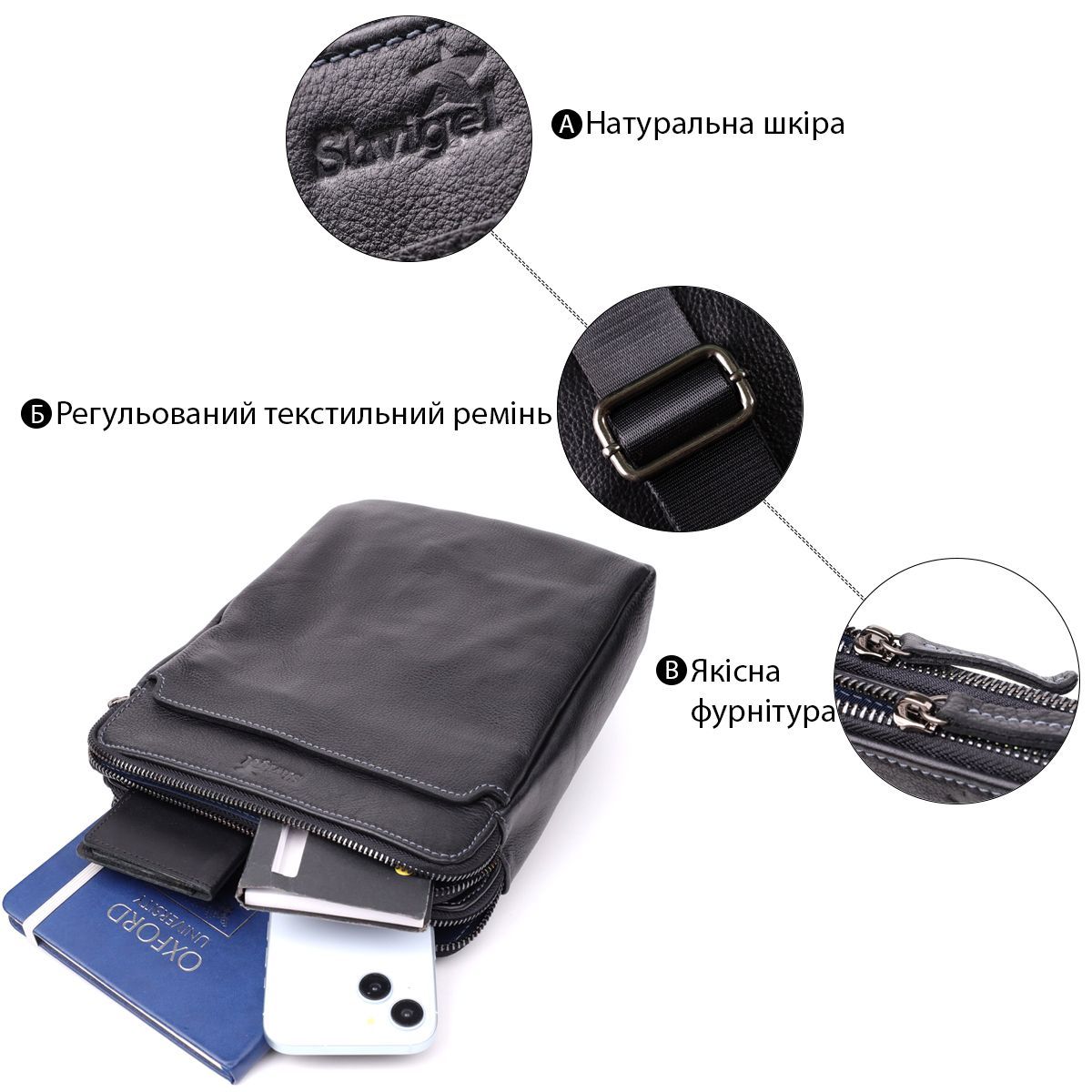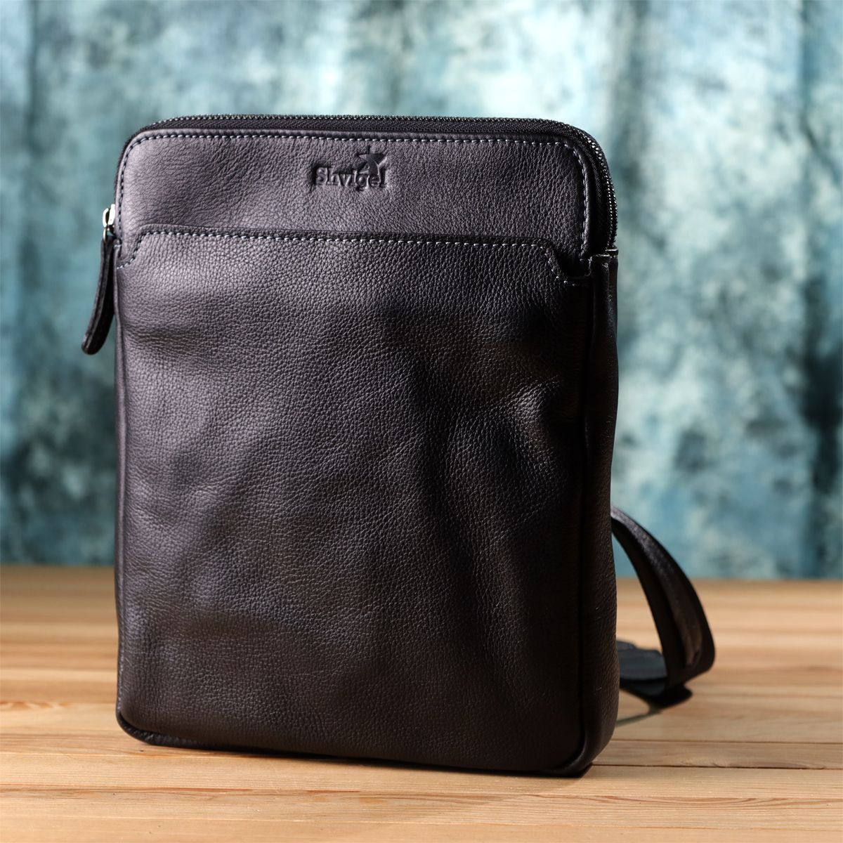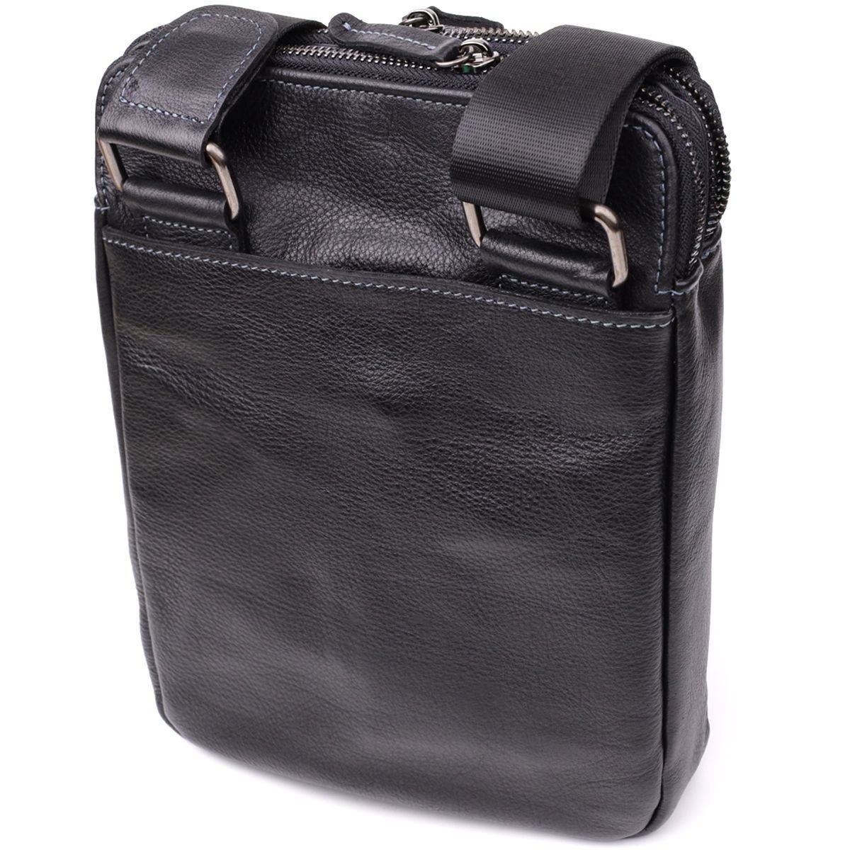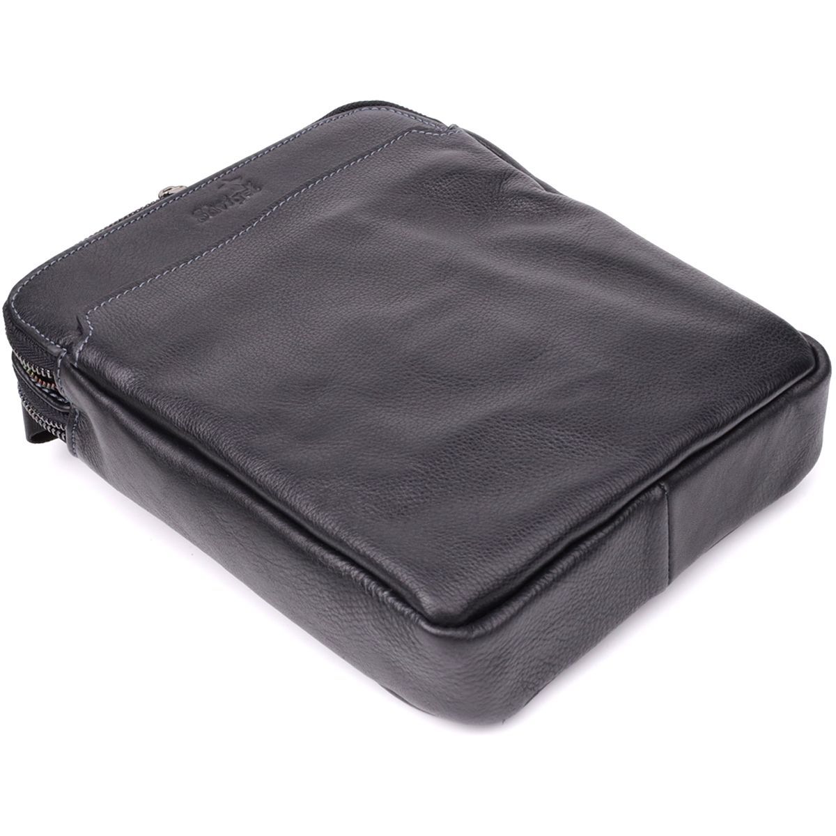 Стильна чоловіча сумка через плече з дрібнозернистої шкіри Shvigel 20869_1 чорна