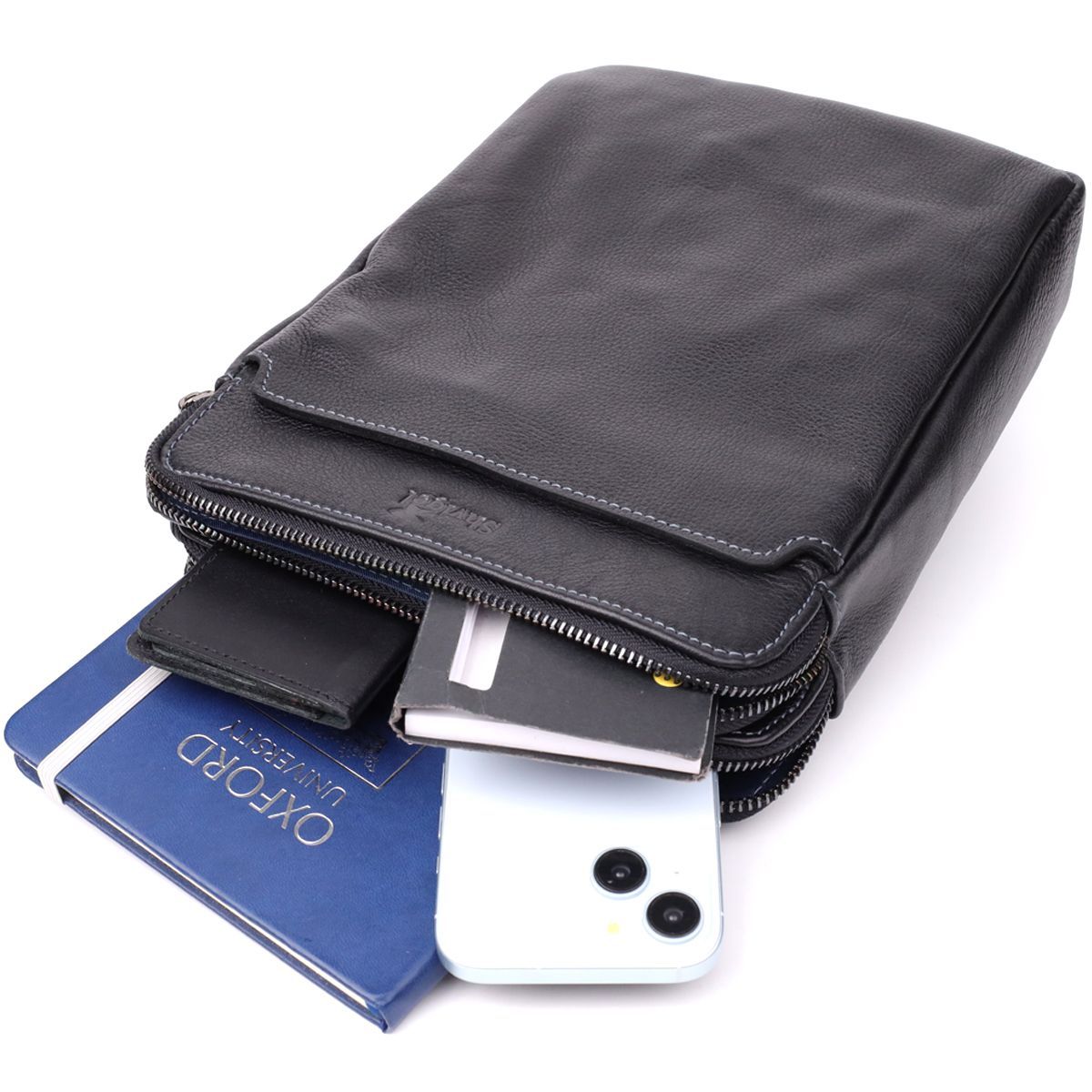 Чоловіча вертикальна сумка від українського бренду SHVIGEL виконана з натуральної чорної дрібнозернистої шкіри, яка поєднує міцність та вишуканий зовнішній вигляд. Компактні розміри та продумана організація внутрішнього простору дозволяють зручно розмістити документи, планшет чи особисті речі. Зовнішні кишені забезпечують швидкий доступ до необхідних предметів, а міцний ремінь з шкіряними вставками гарантує комфорт при носінні. Сумка поєднує стиль, функціональність та якість, роблячи її надійним супутником як для ділового образу, так і для повсякденного використання, підкреслюючи статус та впевненість власника.