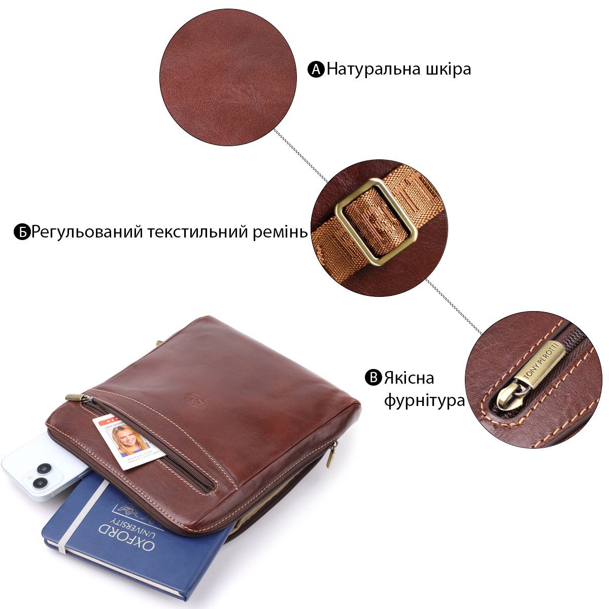 Стильна чоловіча сумка через плече з гладкої натуральної шкіри Tony Perotti 20854_1 (9137-20 moro) коричнева