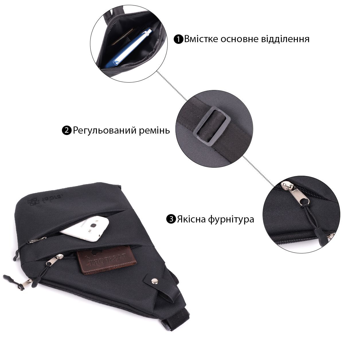 Стильна повсякденна слінг-сумка з якісного поліестеру FABRA 22586 чорна