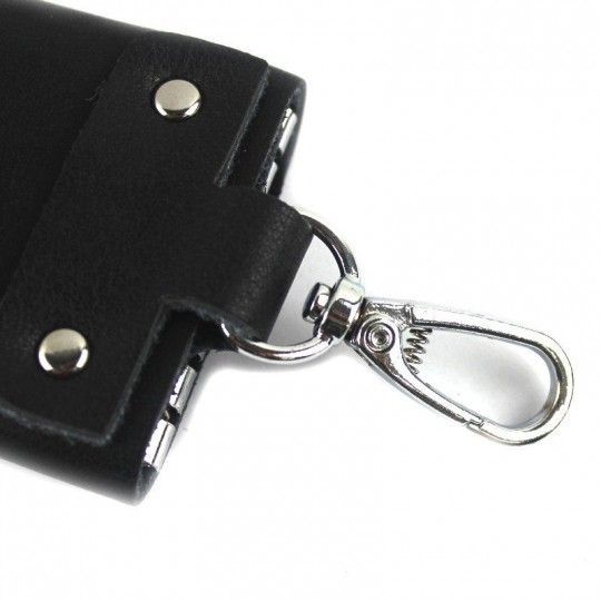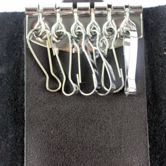 Розкішна ключниця, чорного кольору, виготовлена із натуральної шкіри високої якості. Складається виріб із шести карабінів для ключів та зовнішнього карабіну.