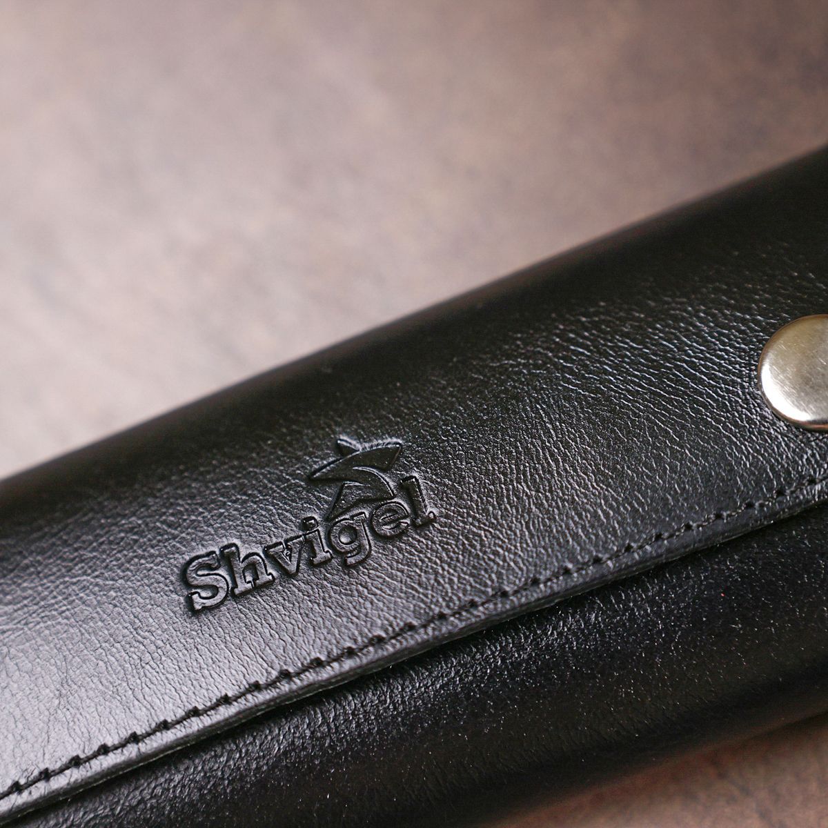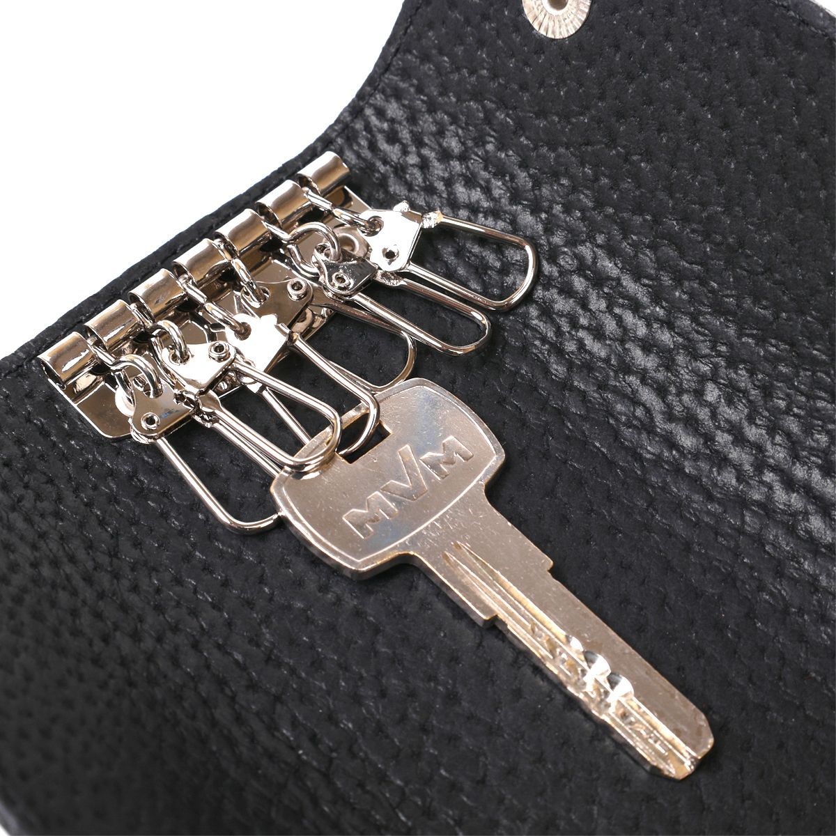 Добротная ключница из натуральной кожи от украинского производителя с отличными характеристиками износостойкости. Цвет изделия – универсальный черный с легким блеском, фактура – гладкая. Внутри расположены шесть небольших карабинов для ключей. Закрывается аксессуар на две кнопки в цвете серебра.