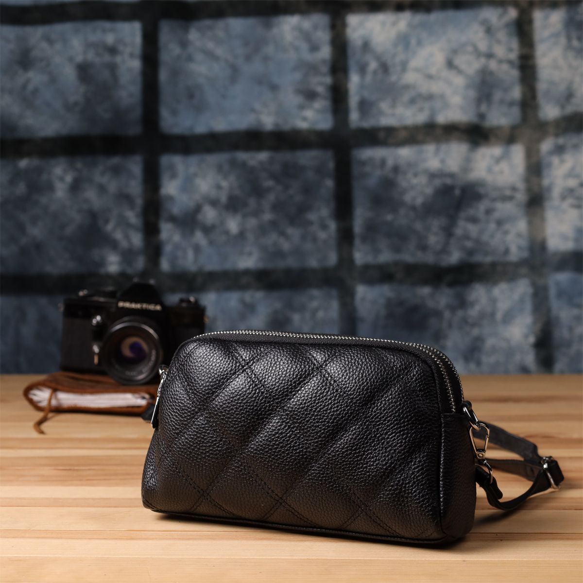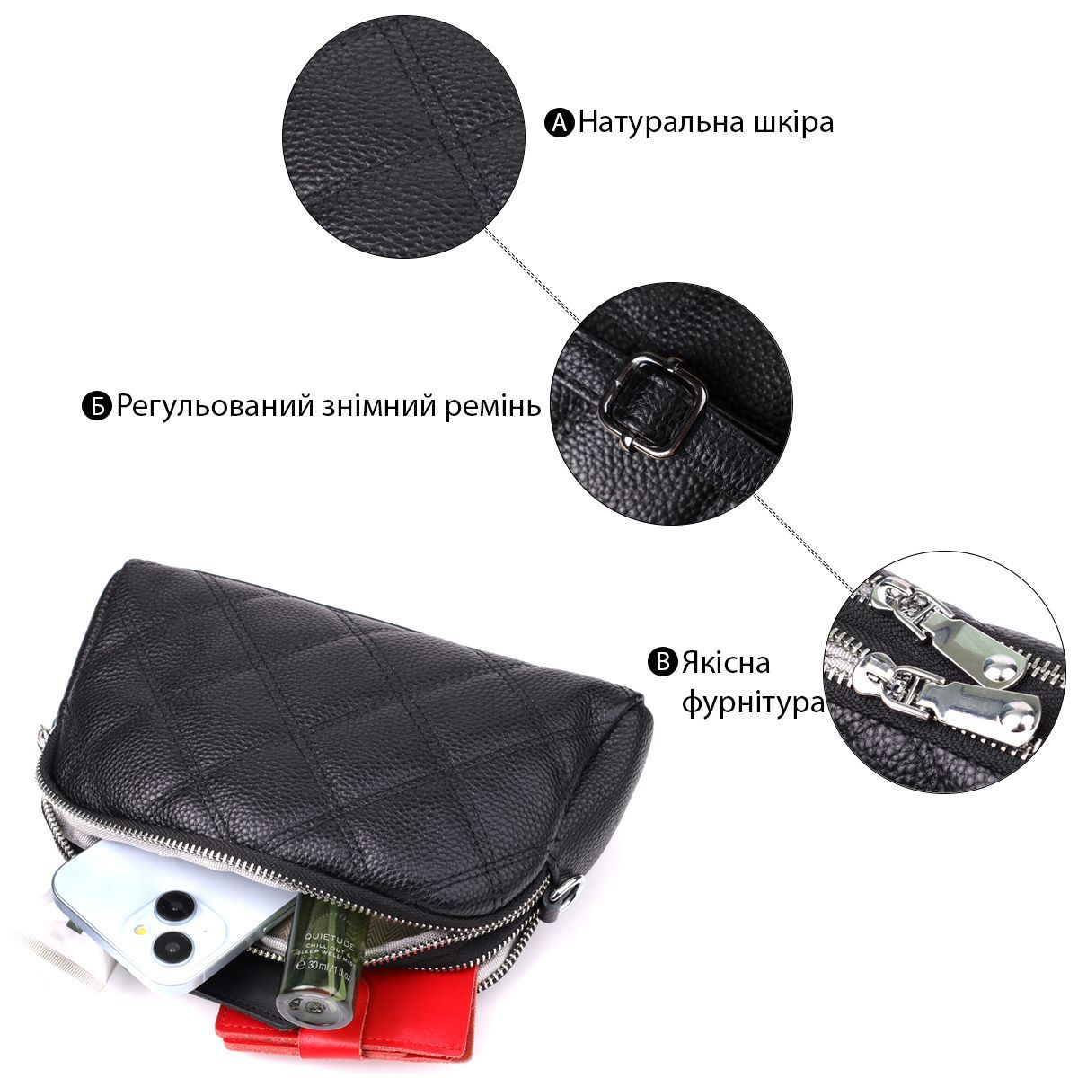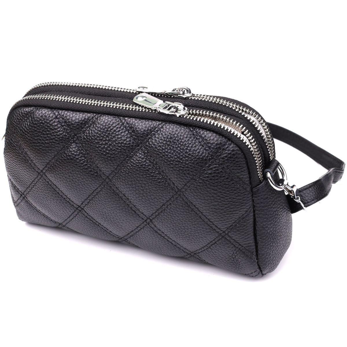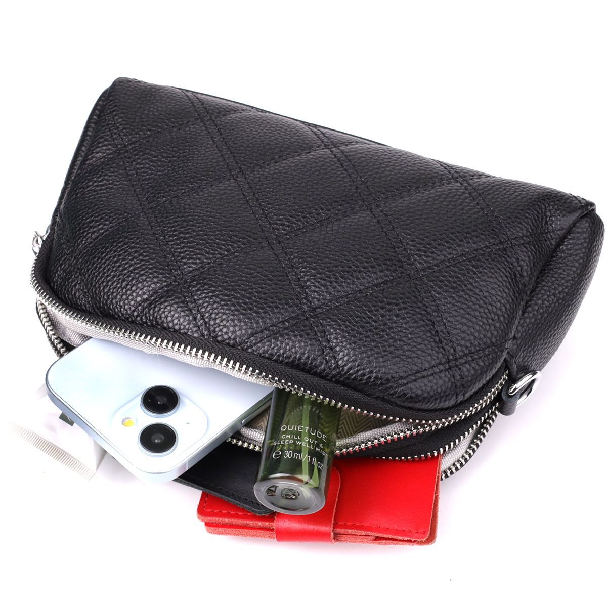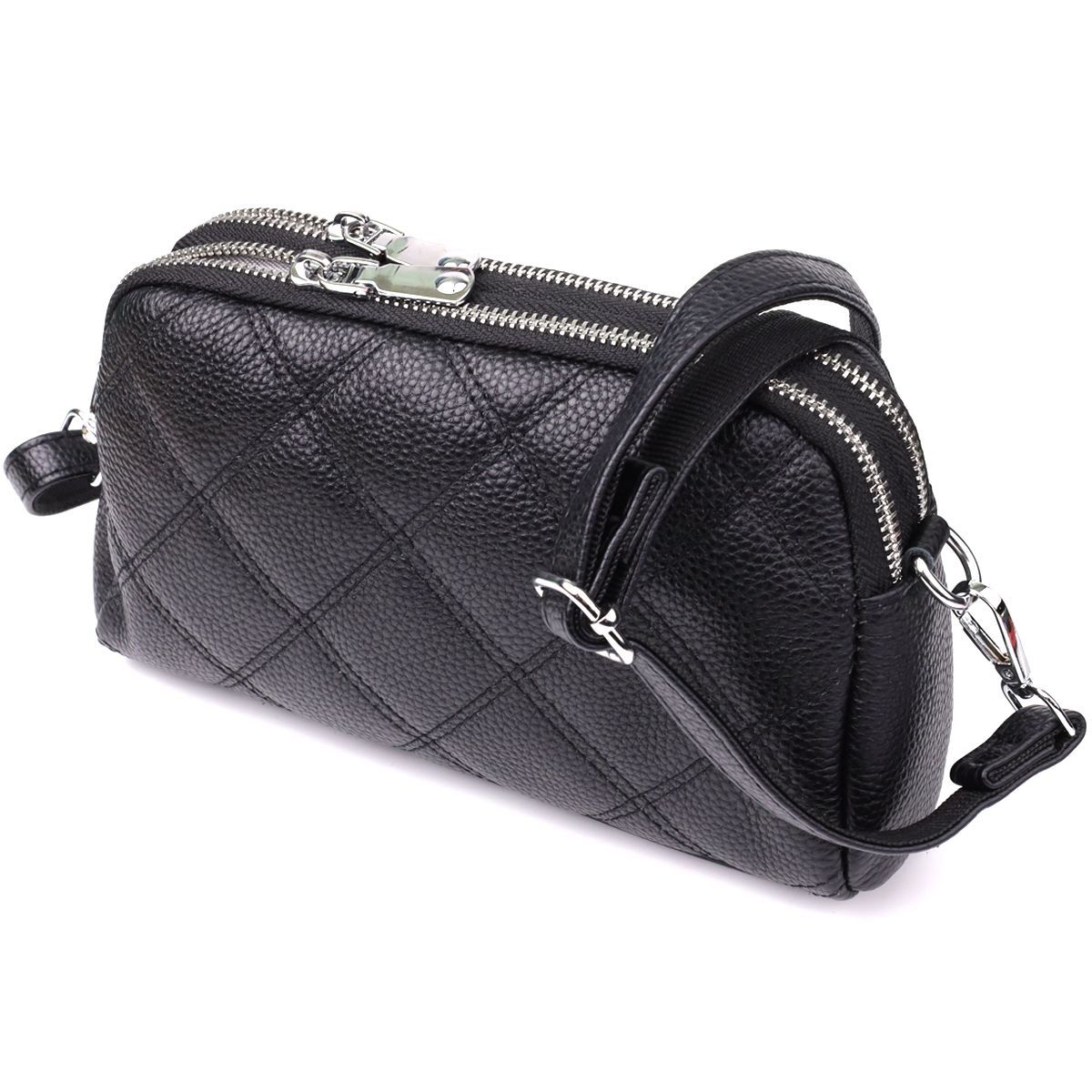 Стильна сумка прошита ромбами з натуральної шкіри Vintage 22930 чорна