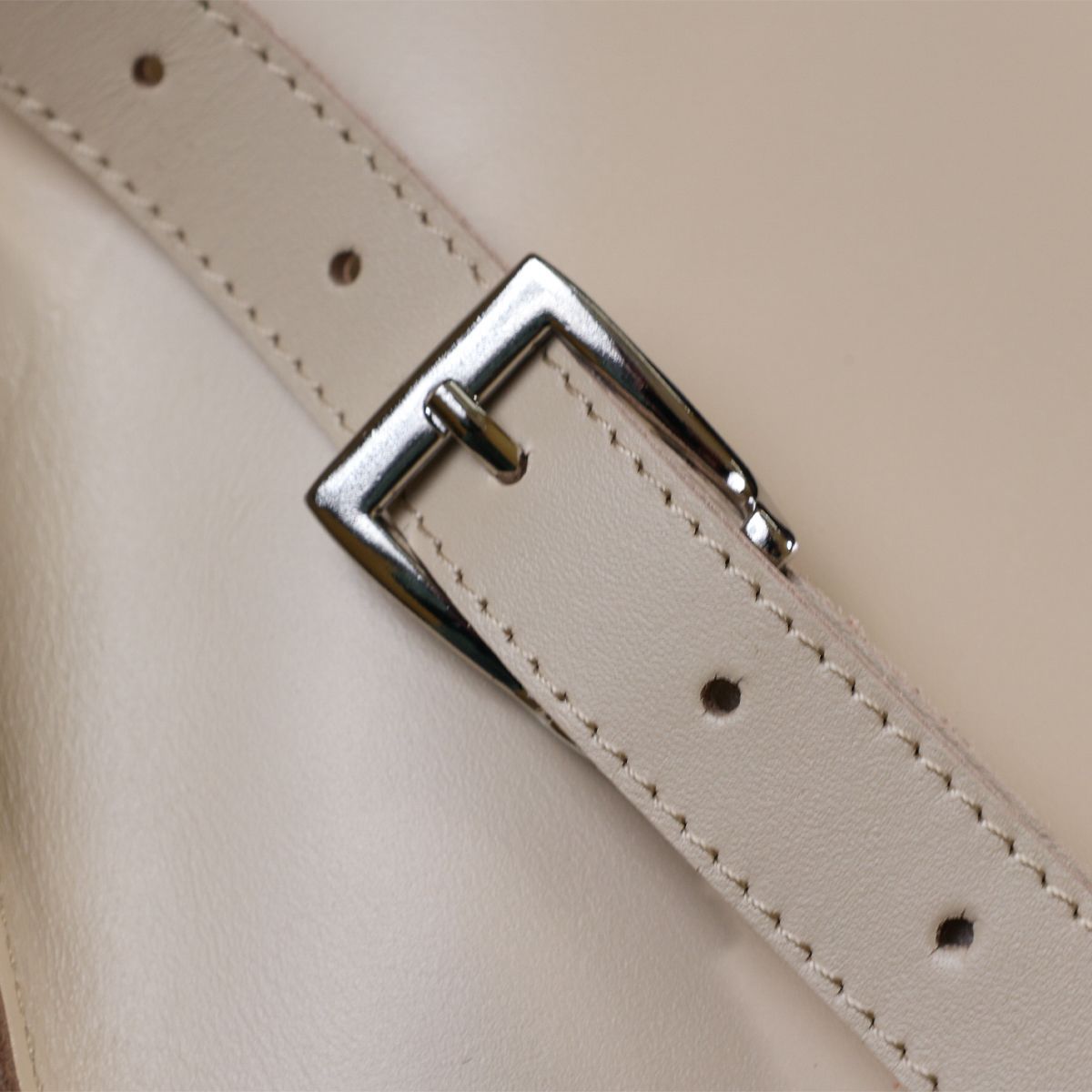 Стильная и современная женская бананка из натуральной кожи высокого качества, обладающая повышенными прочностными характеристиками. Имеет одно просторное главное отделение на молнии. Ремешок регулируется по длине и выполнен из натуральной кожи. Цвет изделия – бежевый, фактура – гладкая и очень приятная на ощупь.