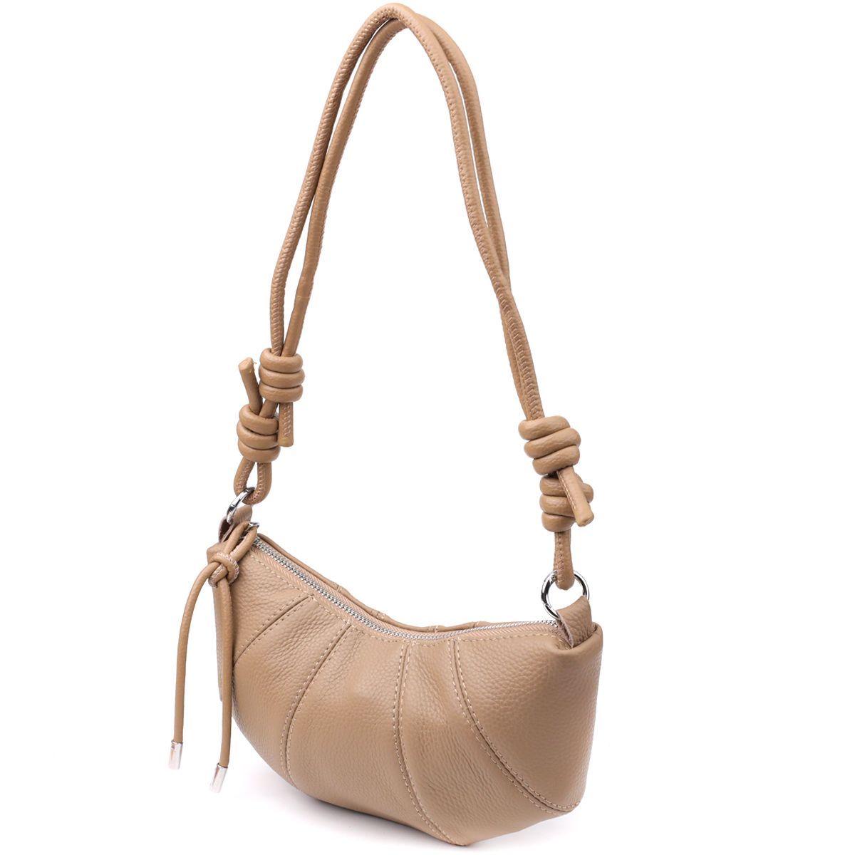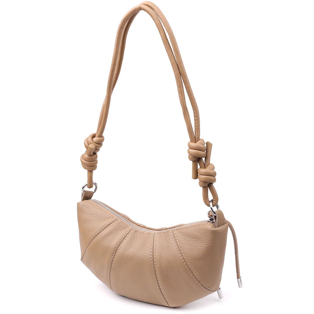 Бежева шкіряна сумка з ремінцем-мотузкою - відмінний вибір для тих, хто цінує легкість, стиль та функціональність у повсякденних аксесуарах.