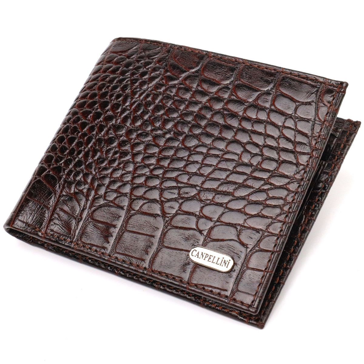 Стильное мужское портмоне из натуральной фактурной кожи с тиснением под крокодила Canpellini 21777 коричневое