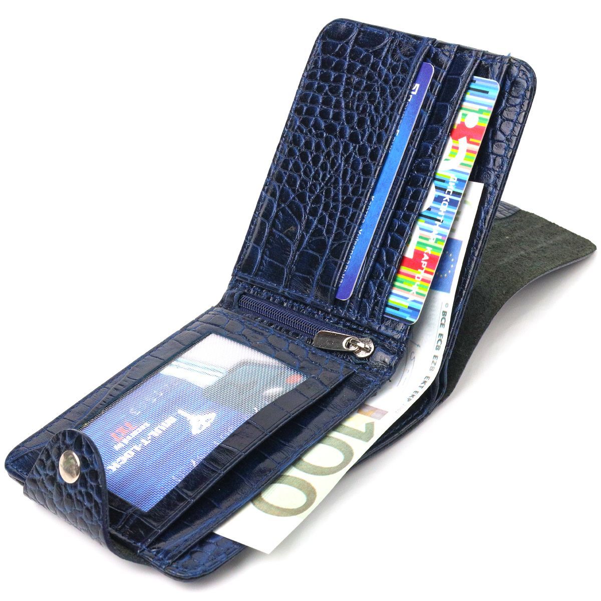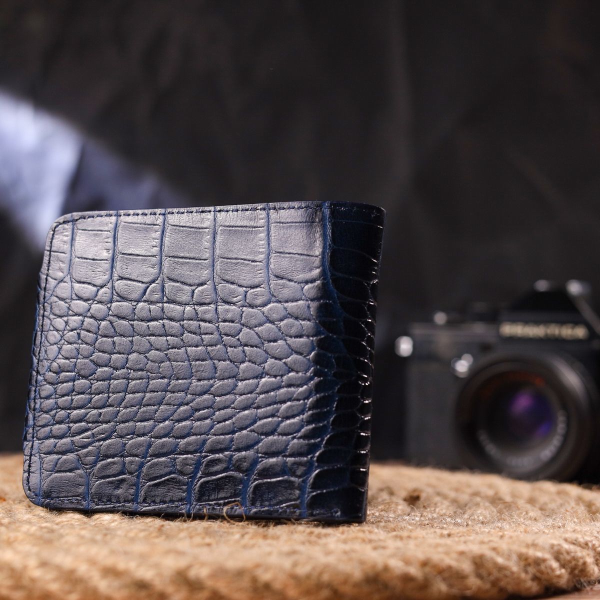 Стильное портмоне для мужчин в два сложения из натуральной фактурной кожи с тиснением под крокодила Canpellini 21577 синее