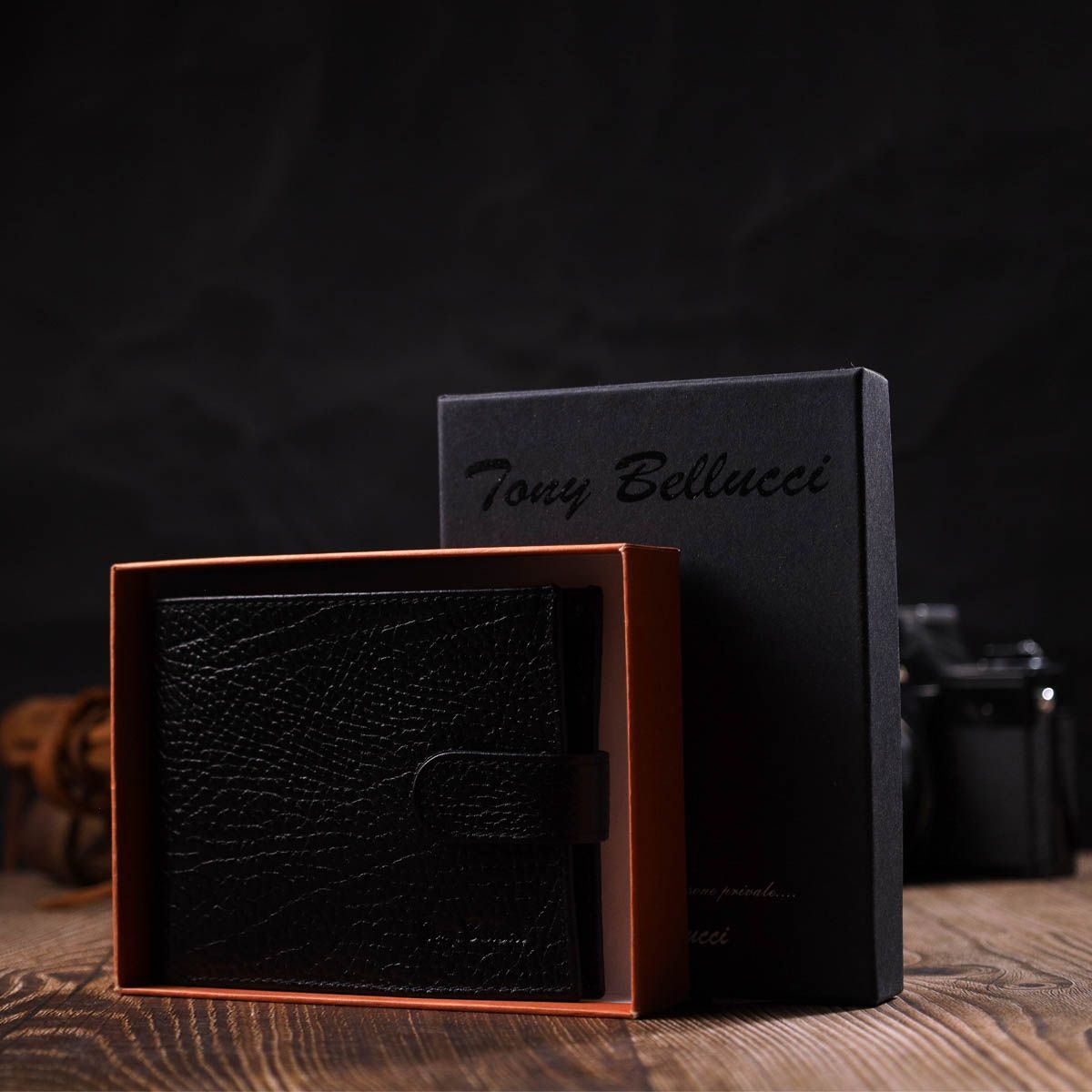 Стильный мужской кошелек горизонтального формата из натуральной кожи Tony Bellucci 22015 черный