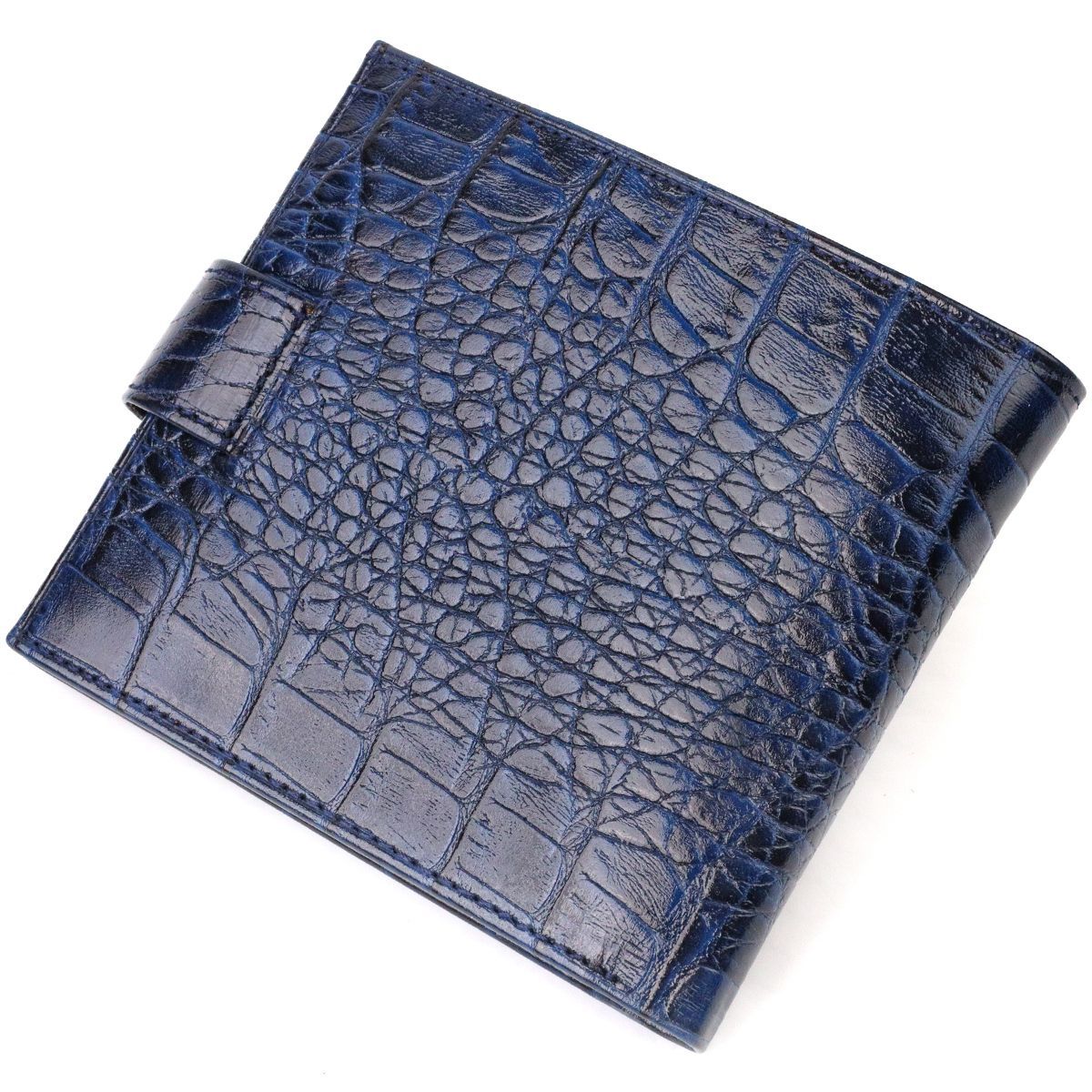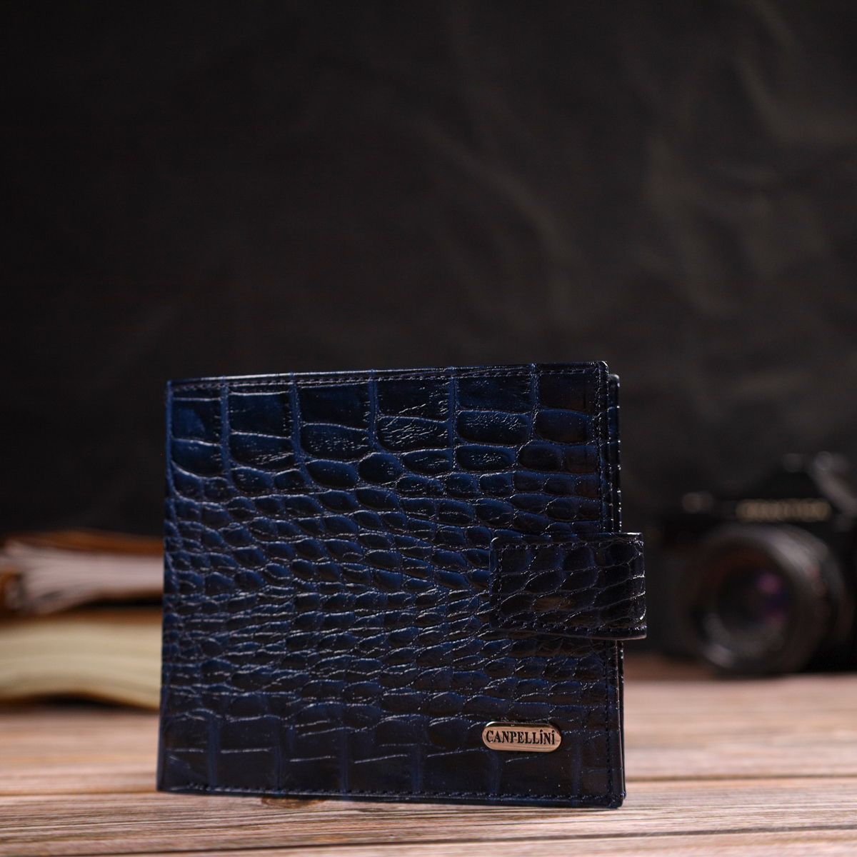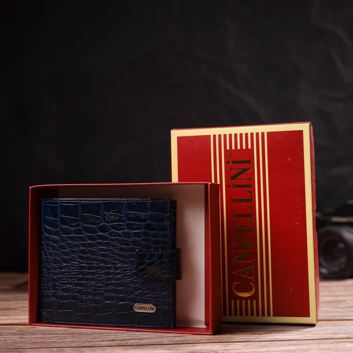 Стильный мужской кошелек горизонтального формата из натуральной кожи с тиснением под крокодила Canpellini 21758 синий