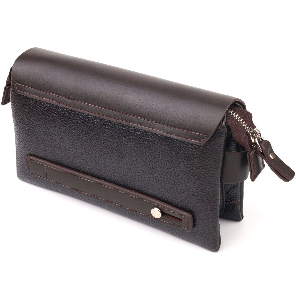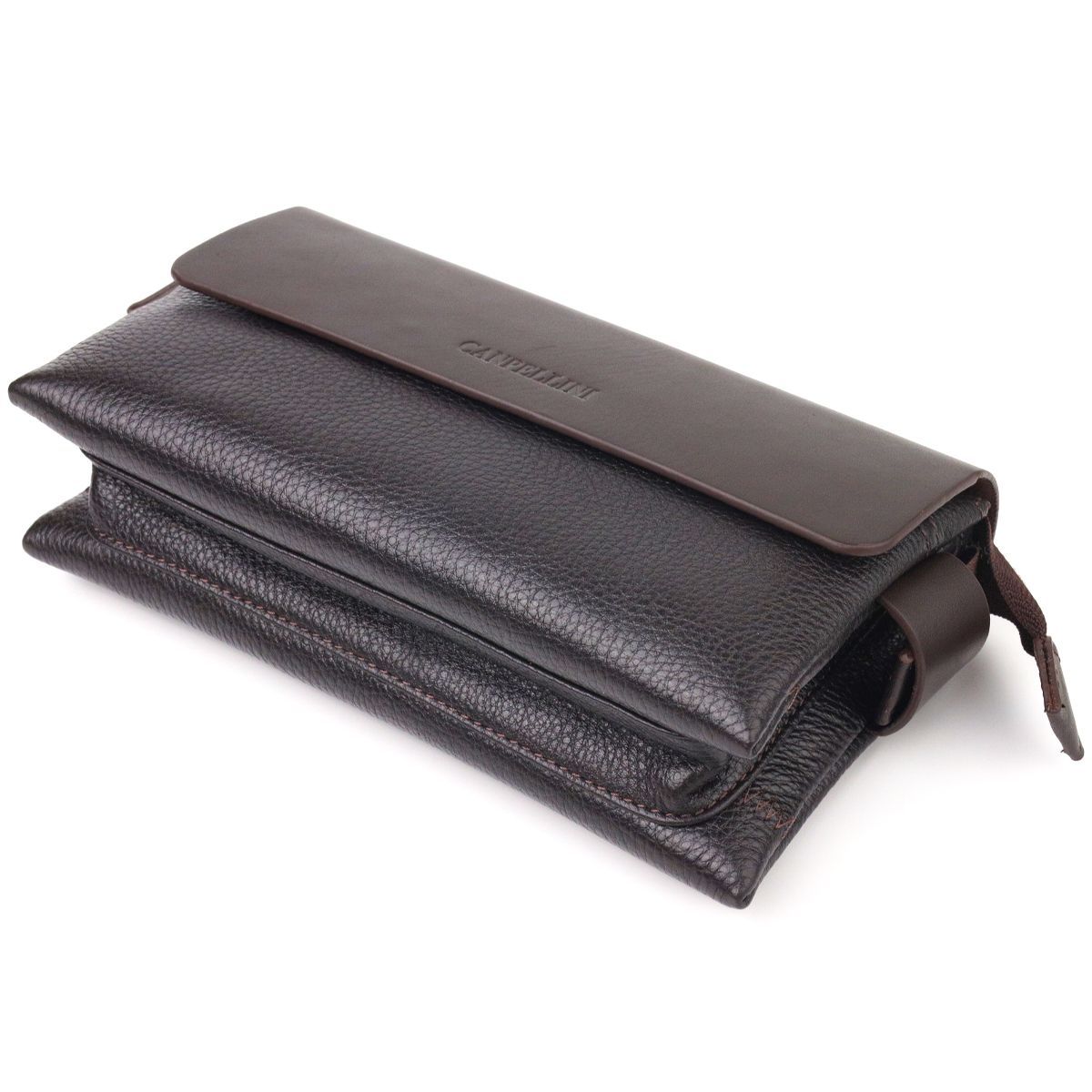 Стильный мужской клатч из натуральной комбинированной кожи Canpellini 21566 коричневый