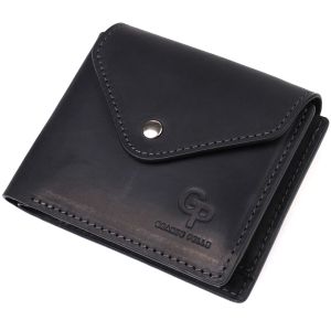Невелике горизонтальне портмоне, виготовлене тільки з натуральної шкіри найвищої якості, без тканинної підкладки. Виріб виконаний у вінтажній шкірі, яка має підвищену міцність завдяки оригінальній фінішній обробці "крейзі хорс". Фішкою цього гаманця є трикутний клапан зверху, на який закривається аксесуар. Дане портмоне ідеальний варіант для сучасної людини, яка вважає за краще носити мінімум готівки і вибирає картки. Портмоне упаковане у фірмову коробку. Дане портмоне стане найкращим подарунком для ваших близьких.