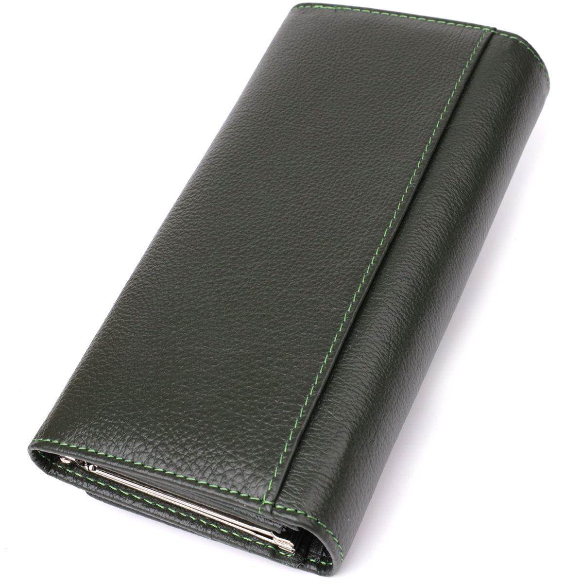 Стильний гаманець у два складення з натуральної шкіри ST Leather 23066 зелений