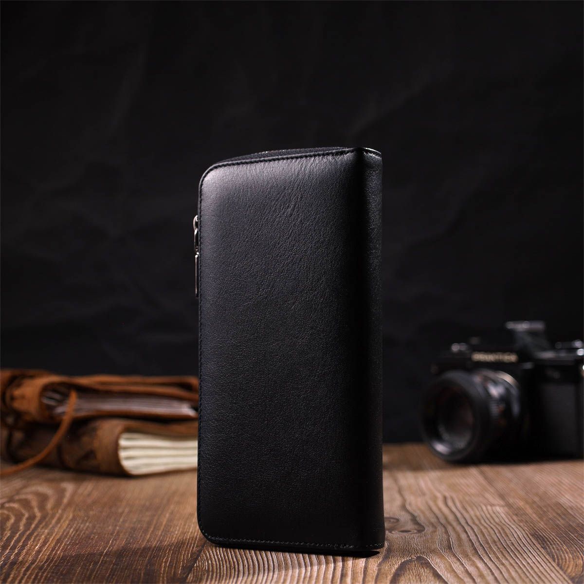 Стильный кошелек для современных женщин из натуральной гладкой кожи. Аксессуар состоит из трех отделений для купюр, шести ячеек для пластиковых карт, трех прилегающих карманов и монетницы. В изделии использована качественная фурнитура. Закрывается кошелек на молнию. Качественный и надежный кошелек – именно такой аксессуар должен быть у каждого уважающего себя человека.