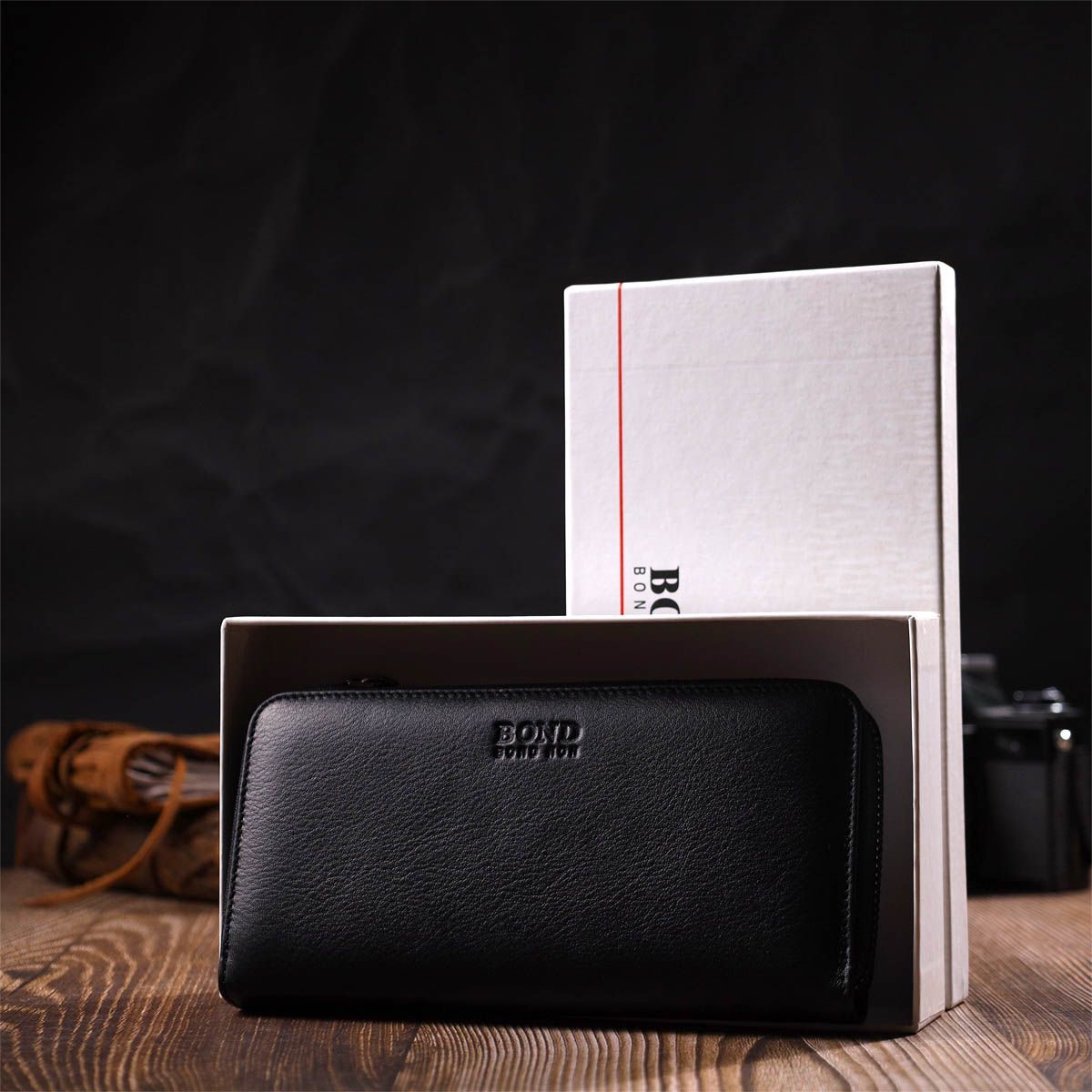 Стильный женский кошелек из натуральной гладкой кожи BOND 22054 черный
