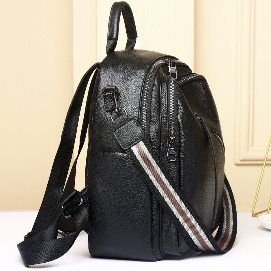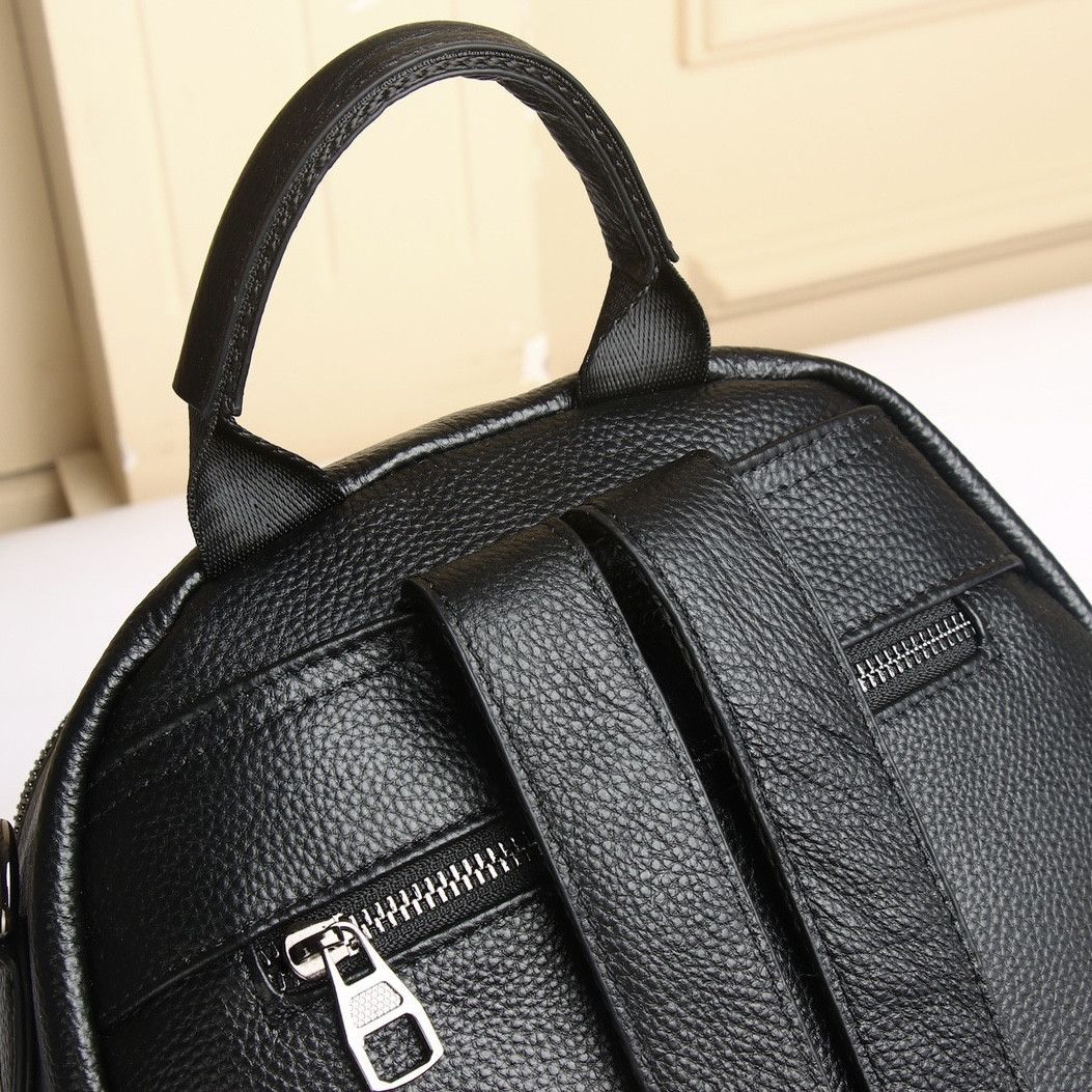 Стильний аксесуар для дівчат і жінок, необхідний для повсякденного життя, яка стає динамічнішою, активнішою та швидкіснішою. У такий практичний і функціональний рюкзак дасть змогу розмістити багато різноманітних речей. Виготовлений із натуральної шкіри, у практичному чорному кольорі, який буде доречний у будь-якій колірній гамі гардероба. Вміщує документи формату А5.