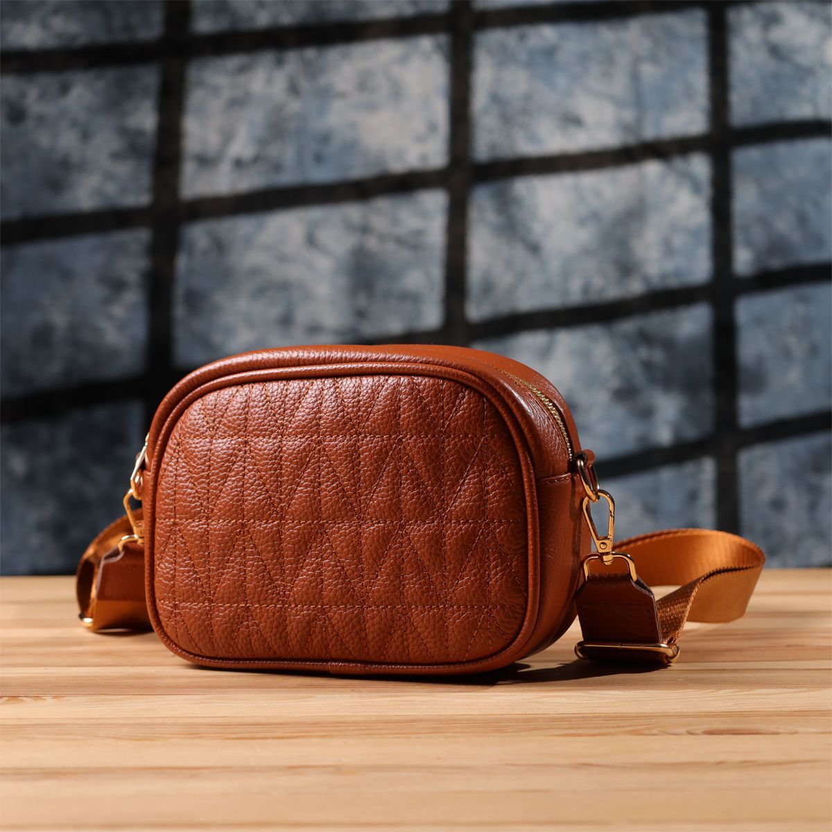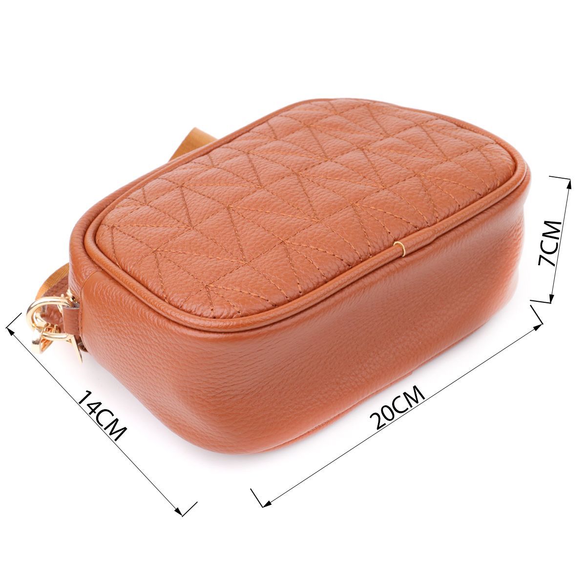 Елегантна руда стьобана сумка Vintage із натуральної шкіри стане стильним акцентом у вашому гардеробі, додаючи образу тепла та вишуканості. Компактна форма підкреслює акуратний силует, а стібка на лицьовій стороні надає аксесуару особливої чарівності. Сумка закривається на блискавку, всередині розташоване основне відділення з кишенею на блискавці та відкритою кишенею для дрібниць, а на тильній стороні знаходиться зовнішня кишеня на блискавці, яка робить використання ще зручнішим. Знімний текстильний ремінь, що регулюється, забезпечує комфорт при носінні, а фурнітура під жовте золото стильно відтінює насичений рудий колір шкіри. Ця модель легко підходить як для повсякденних образів, так і для особливих випадків, підкреслюючи жіночність та витончений смак своєї власниці.