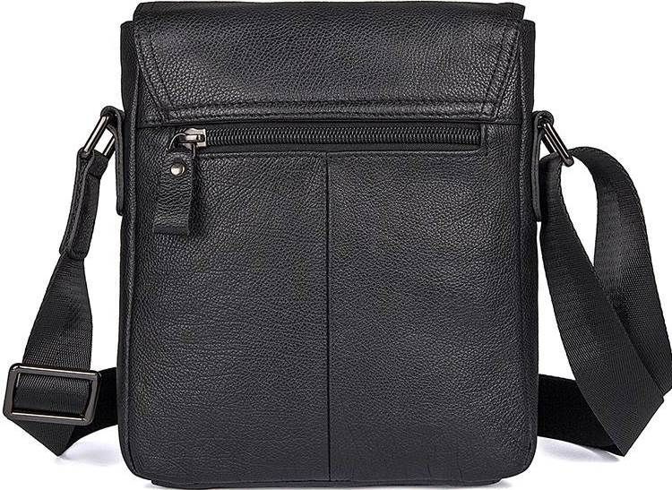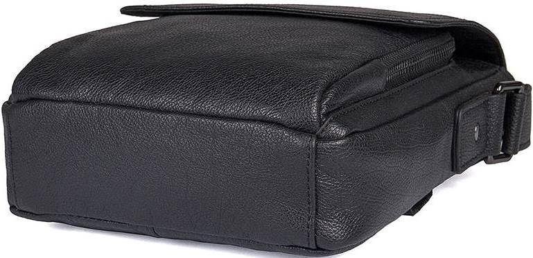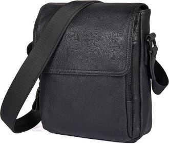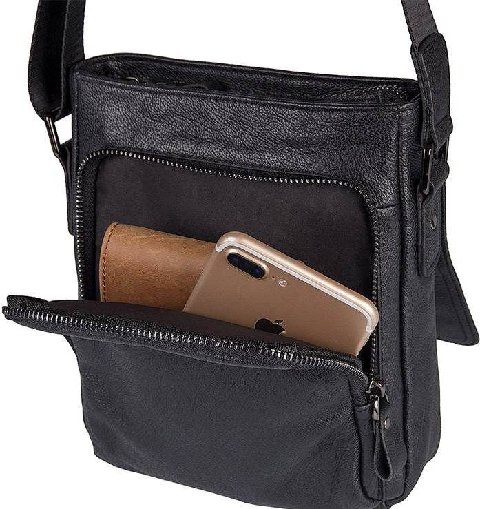 Компактная мужская сумка черного цвета из натуральной кожи. Цвет фурнитуры: серебро. Аксессуар небольшой, но при этом достаточно вместительный и функциональный.