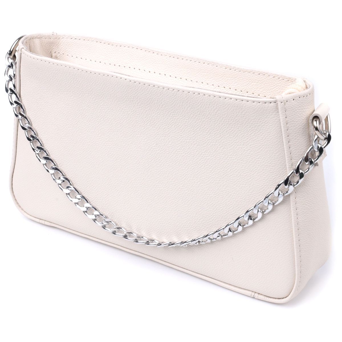 Сумка багет з ланцюжком і знімним ремінцем з натуральної шкіри Shvigel 22835 бежева
