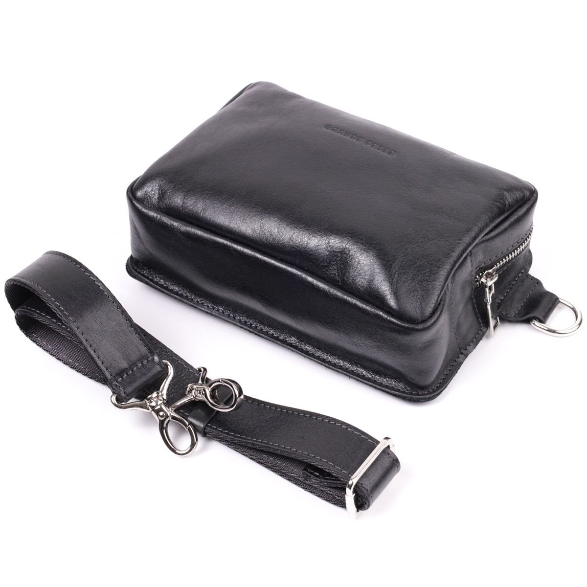 Сумка бананка прямокутного формату із якісної натуральної шкіри GRANDE PELLE 22576 чорна