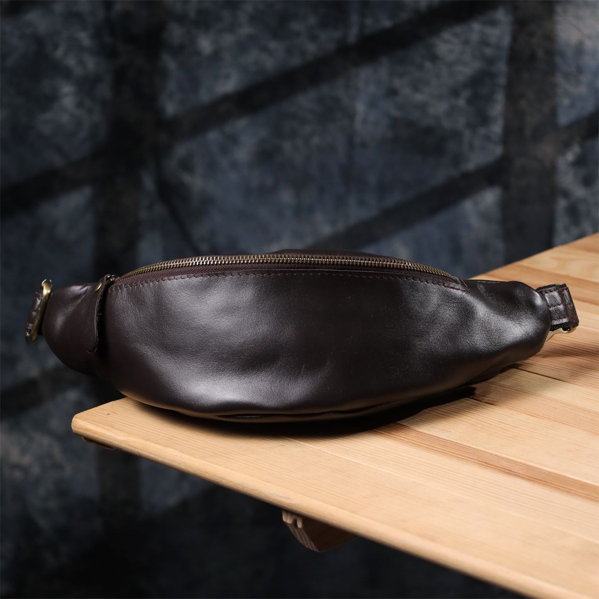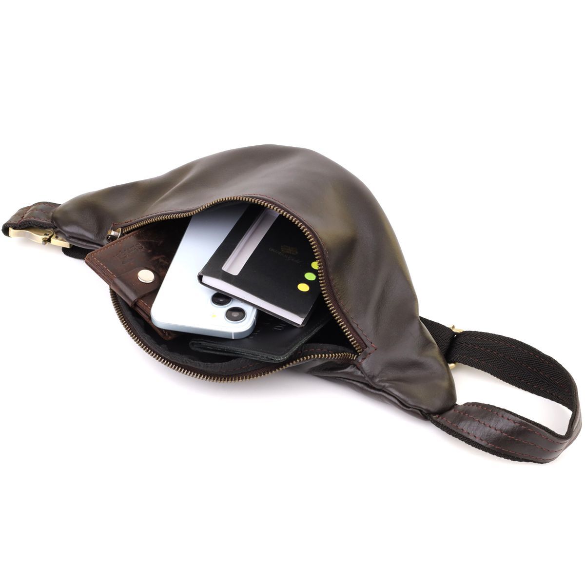 Сумка бананка відмінної якості з гладкої натуральної шкіри Shvigel 23144 коричнева