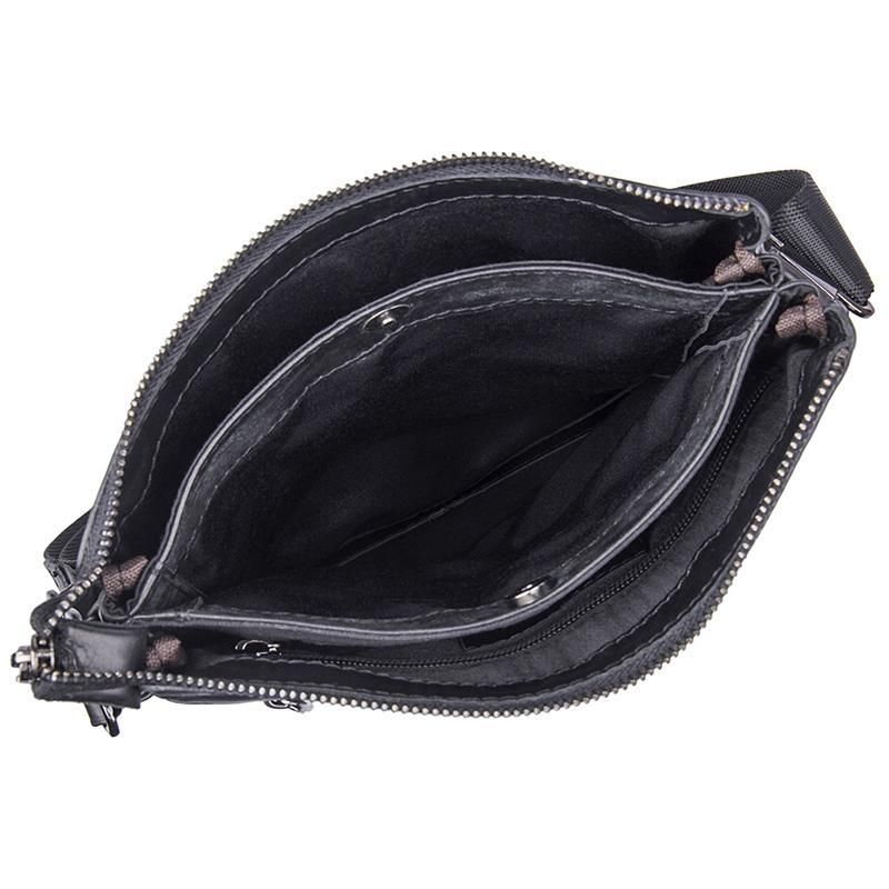 Шкіряний месенджер Tiding Bag 80261A вигідно відрізняється від аналогічних виробів за рахунок оригінального дизайну і внутрішнього наповнення. Крім основного відділу на блискавки, посередині є перегородка на магнітах, що розділяє корисний простір на три містких відсіку. Крім того, месенджер отримав зовнішній вертикальний кишеню і широкий плечовий ремінь з можливістю регулювання на смак власника.