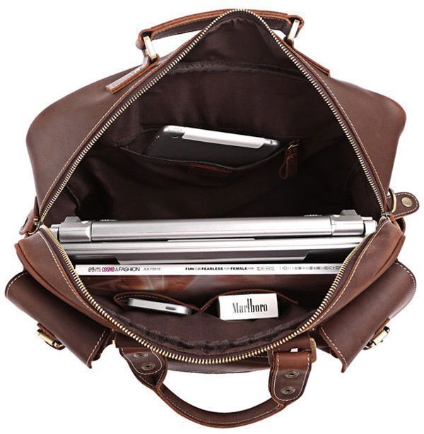 Представляем Вам отличную кожаную сумку из толстой качественной винтажной кожи . Это изделие можно отнести как к обычным сумкам, так и к кожаным дорожным сумкам (саквояжем). Сумка отлично выполнена – смотрится просто супер. По функциональности трудно придумать самую лучшую сумку, она имеет множество карманов и очень удобна в эксплуатации, ее можно использовать для ноутбука.