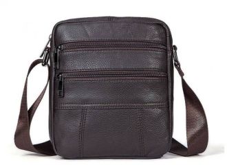 Сумки для стильных мужчин. Удобная и функциональная модель. Прекрасный вариант на каждый день. Кожа флотарий устойчива к износу и долго носится. На ней не видно царапин и смотрится очень эффектно. Модель дополнена цветной фурнитурой темного серебра. Сумка прошита по краям коричневой нитью. Будет идеальным вариантом для подарка близкому человеку.