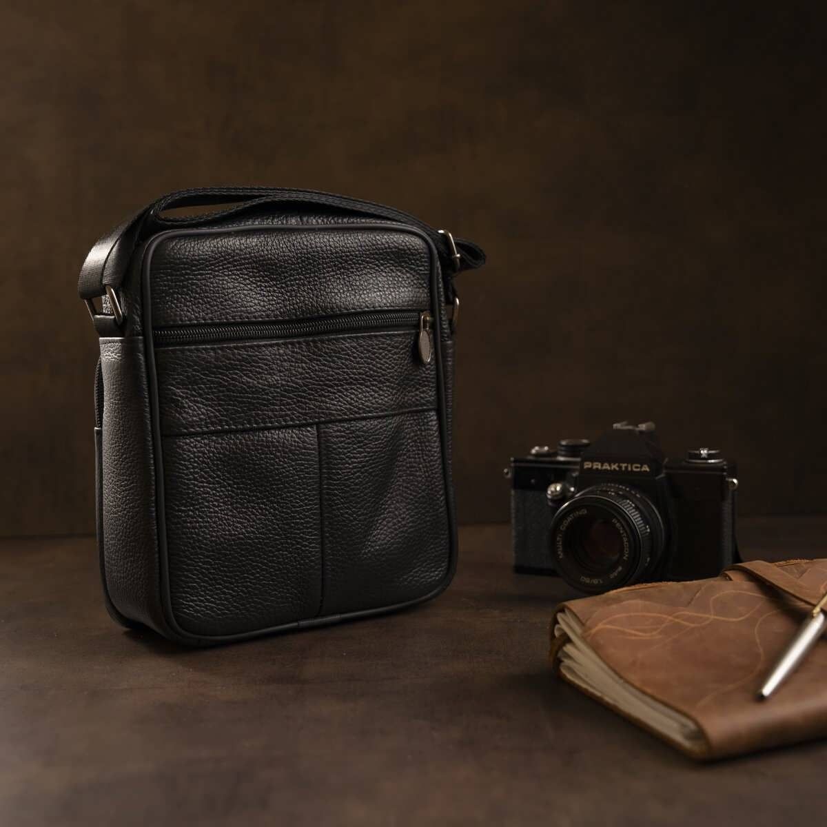 Сумка мужская на одно отделение зернистая 20203 Vintage черная
