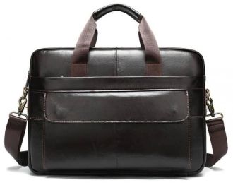 Солидная сумка для мужчин. Подчеркните ваш статус в обществе и отличное чувство стиля. Аксессуар отлично впишется в ваш деловой стиль. В сумке можно спокойно носить ноутбук и документы. Удобно носится как в руках, так и на плече с помощью ручки. Дизайн аксессуара изготовлен в классическом стиле. Модель прошита рыжей нитью и дополнена золотистой фурнитурой. Будет отличным подарком для любого мужчины. Покупая такую сумку, вы будете удивлены, как она приятно носится. Аксессуар упакован в тканевый чехол.
