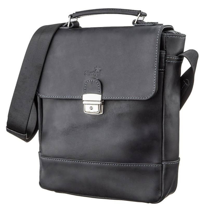 Сумка мужская SHVIGEL 11137 из винтажной кожи черная