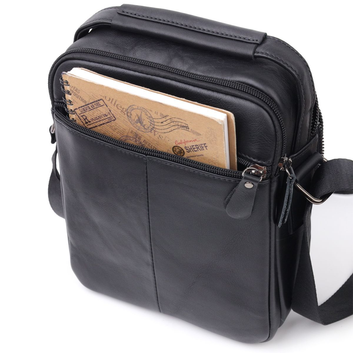 Сумка мужская Vintage 20826 кожаная черная