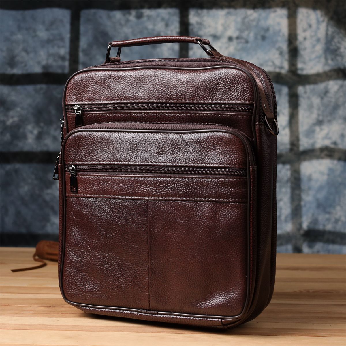 Сумка чоловіча з ручкою для перенесення в руці з натуральної шкіри Vintage 23030 коричнева