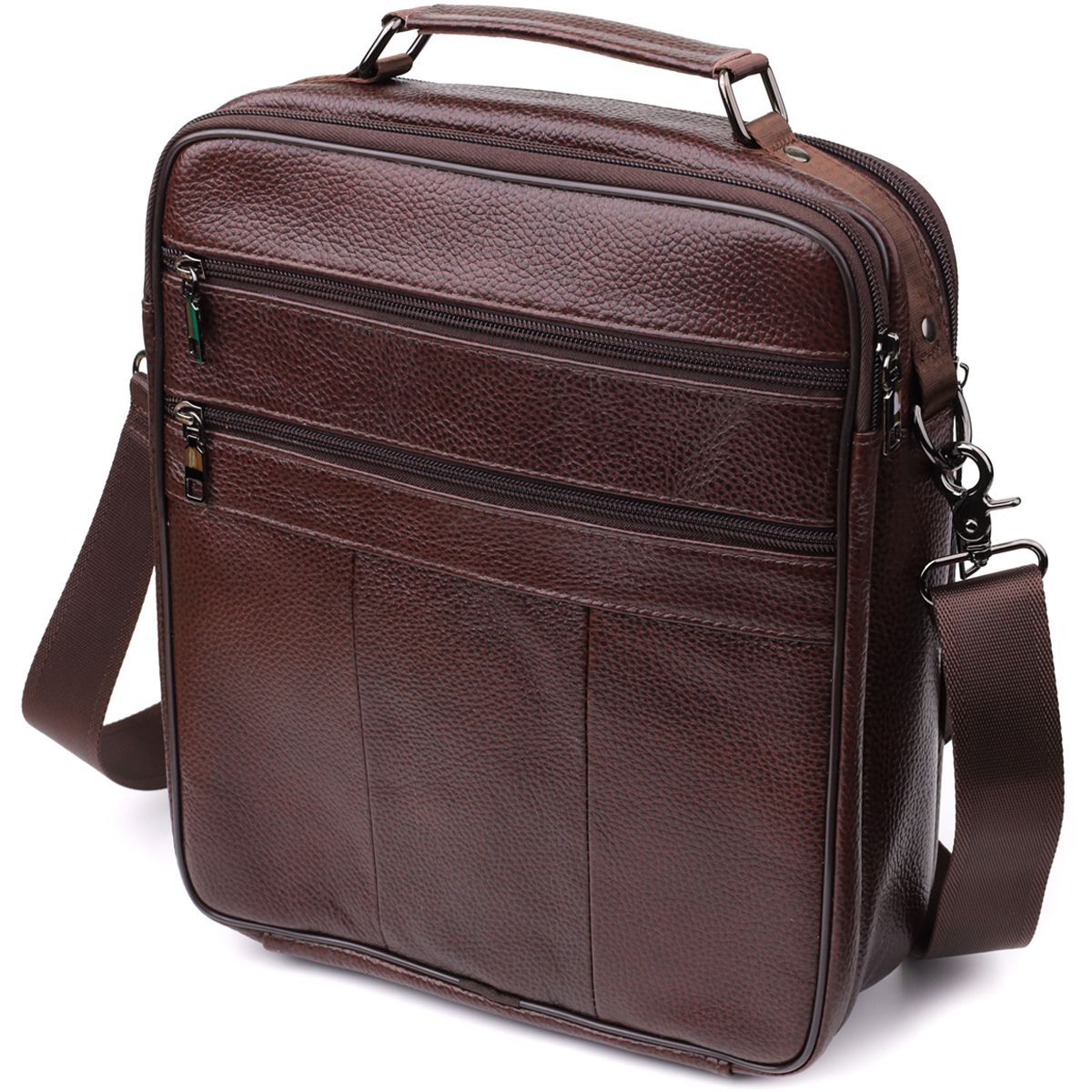 Стильна чоловіча сумка виконана з міцної зернистої шкіри флотар, яка відрізняється вираженою текстурою і високою зносостійкістю.