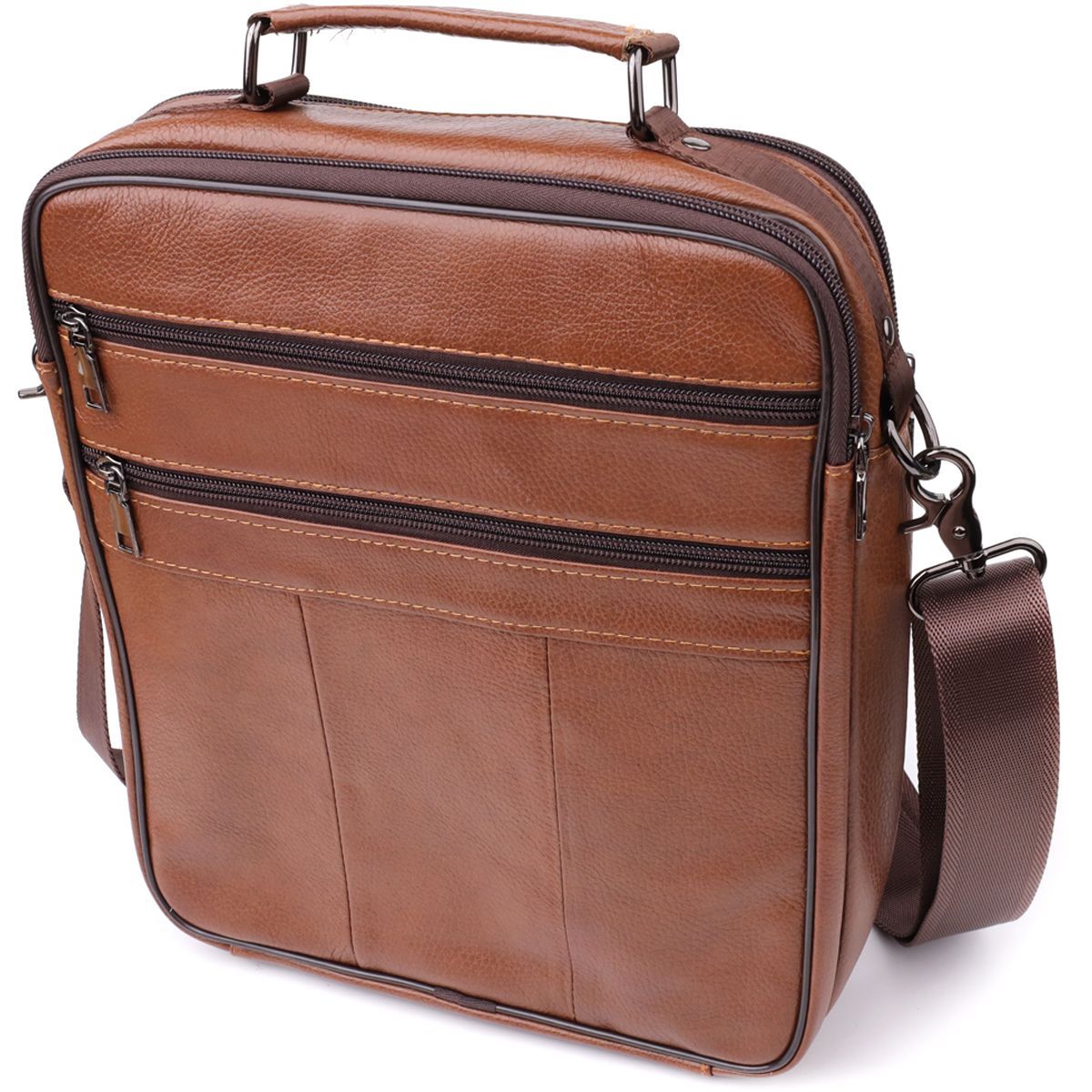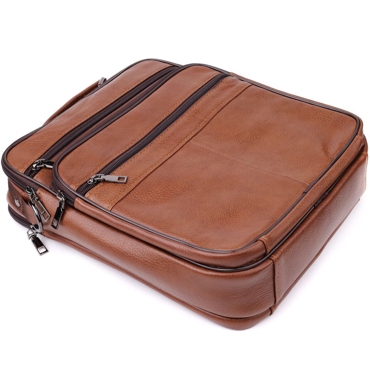 Сумка чоловіча з ручкою для перенесення в руці з натуральної шкіри Vintage 23031 світло-коричнева
