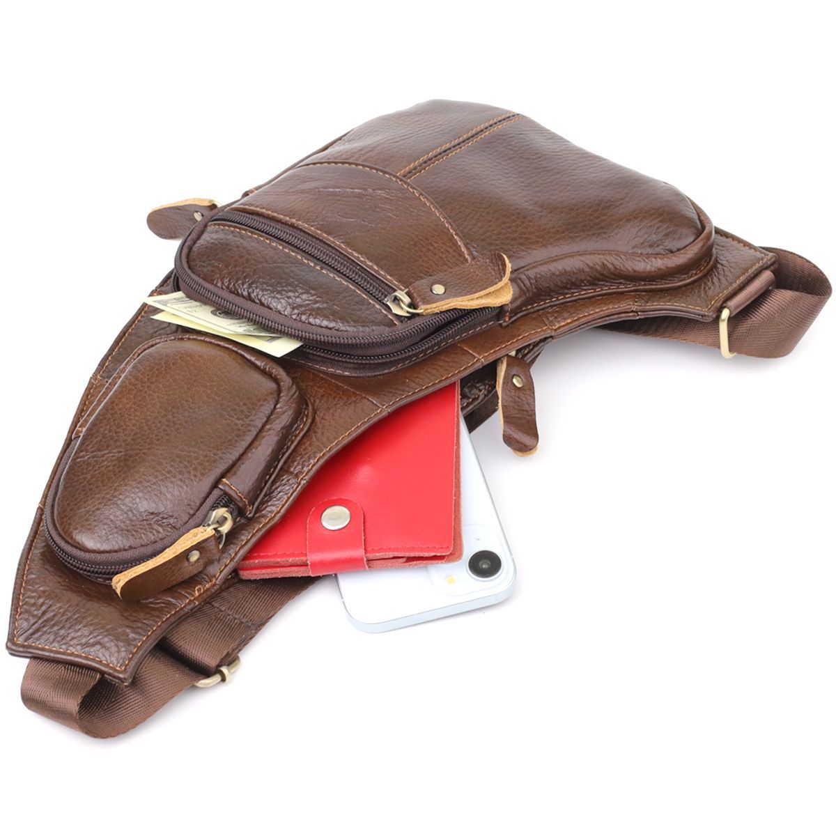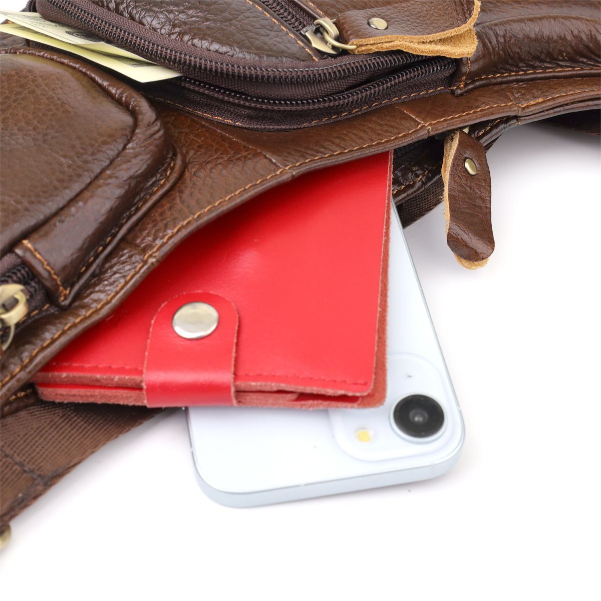 Ця шкіряна сумка через плече з великою кількістю кишень — універсальний аксесуар для активного життя, який поєднує зручність, стиль і якість.