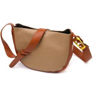 Сумка кросс-боди полукруглая из натуральной кожи 22092 Vintage бежевая