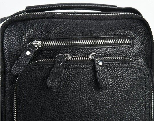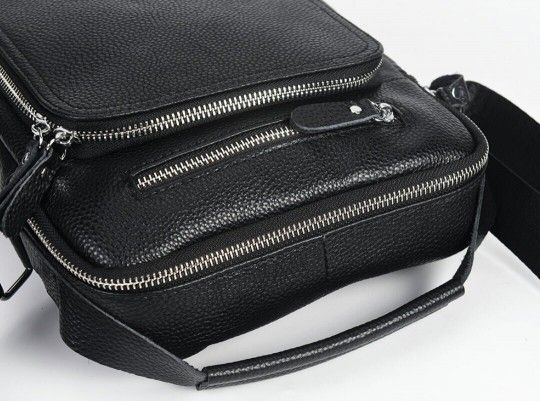 Надежная кожаная сумка из натуральной зернистой кожи, более известной как "флотар". Аксессуар оснащен надежной металлической фурнитурой и прочным текстилем для внутренней подкладки. С внешней стороны изделия расположены два кармана на молниях (накладной и встроенный). Аксессуар состоит из одного отделения на молнии. Внутренне-потайный карман на молнии. Носится сумка через плечо с помощью регулируемого ремня или с помощью кожаной ручки. Взяв сумку в руки, Вам больше не захочется ее отпускать, потому что качество чувствуется сразу и отличный современный дизайн понравится большинству мужчин.