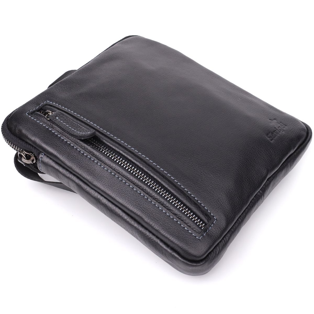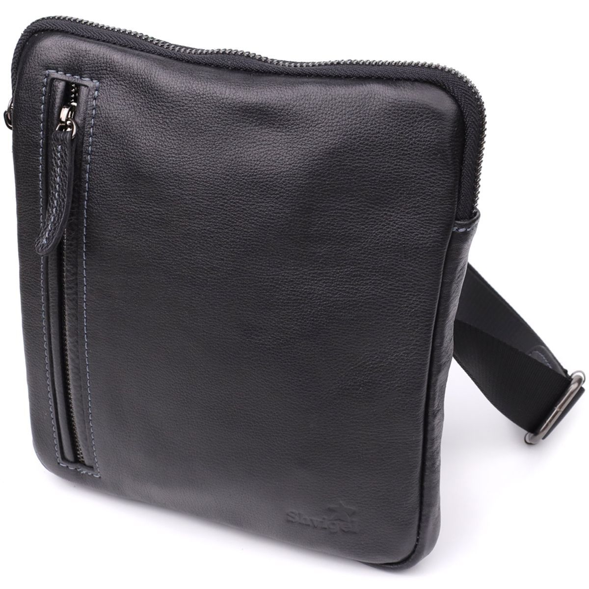 Сумка на плече для чоловіків із міцної зернистої шкіри Shvigel 23152 чорна