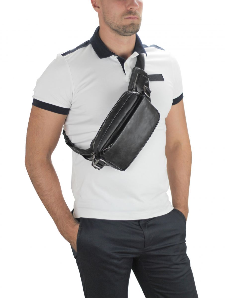 Сумка на пояс з натуральної шкіри чорна Tiding Bag 1001A