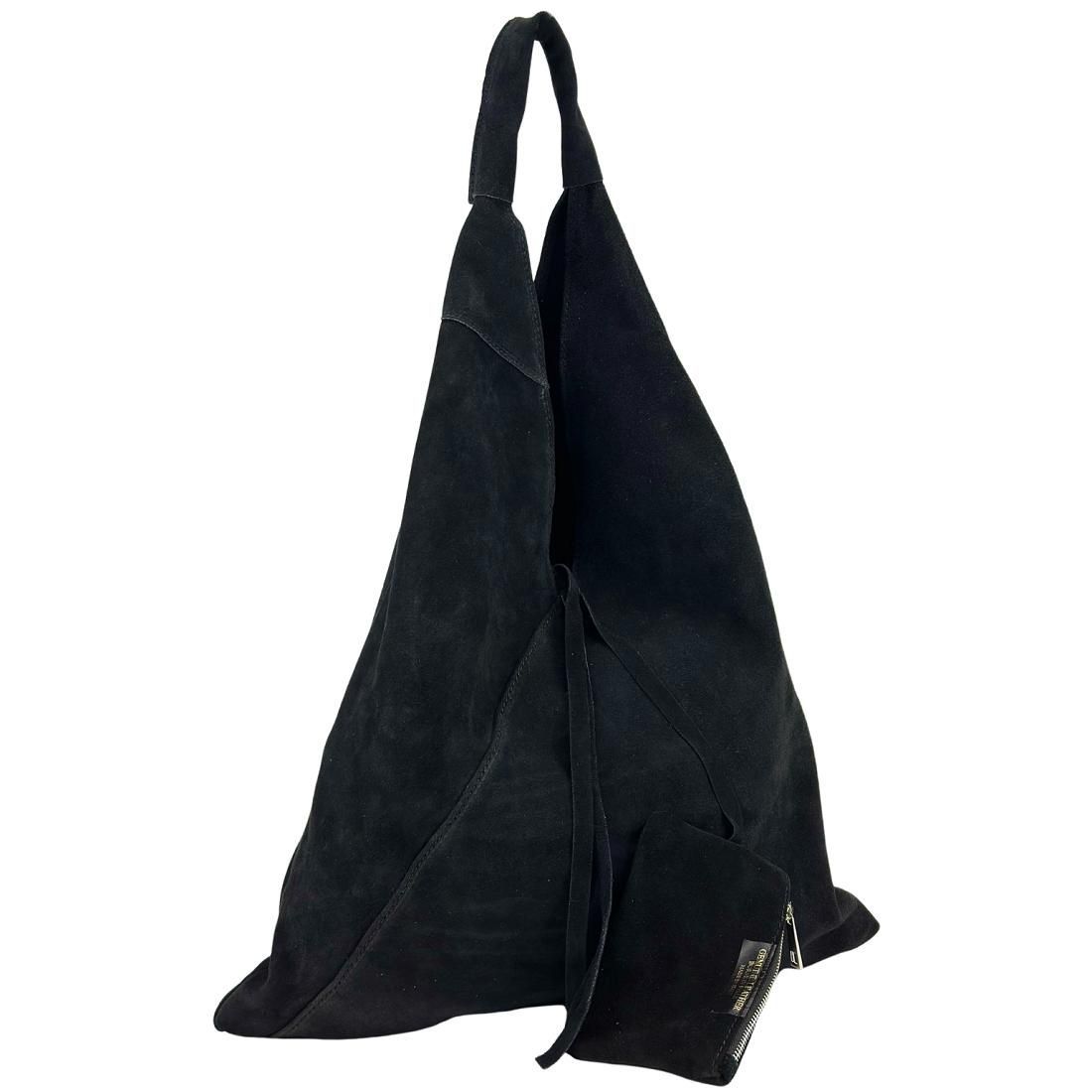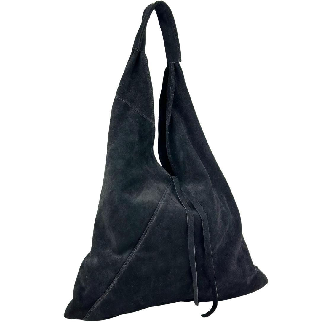 Сумка-шопер чорна замшева велика Firenze Italy F-IT-7625A-D