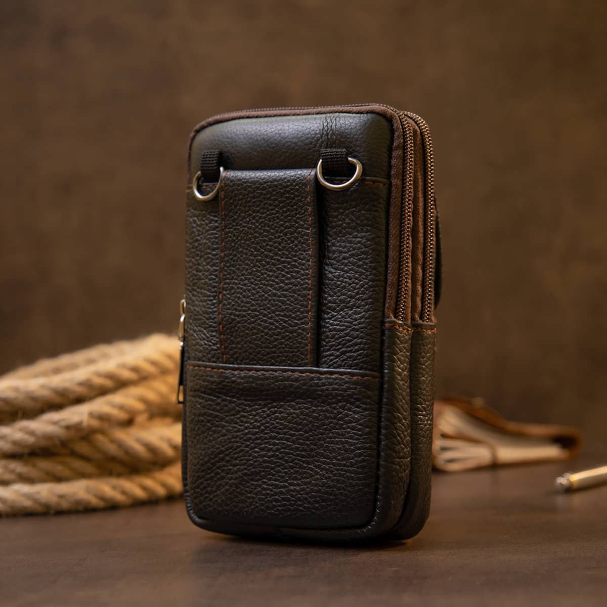 Маленькая сумка легко заменит барсетку или бананку. Изделие в мягкой коже. Аксессуар вы сможете носить на поясе за петельку или с помощью карабина. В комплекте текстильный ремешок тонкий. Изделие с рыжей нитью в дизайне. Аксессуар станет просто находкой в путешествиях или водителям. Сумка станет отличным подарком для мужчины и женщины.