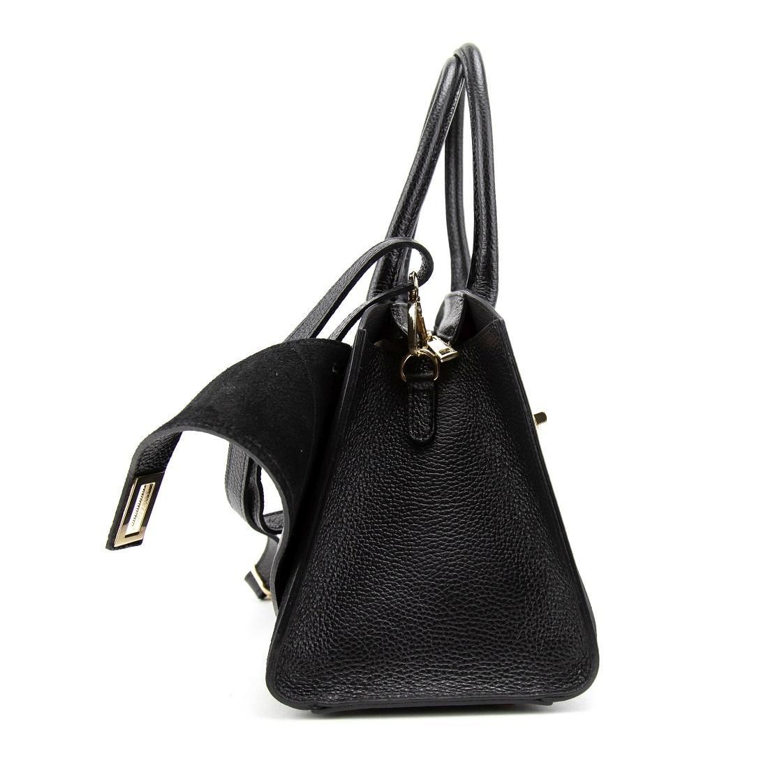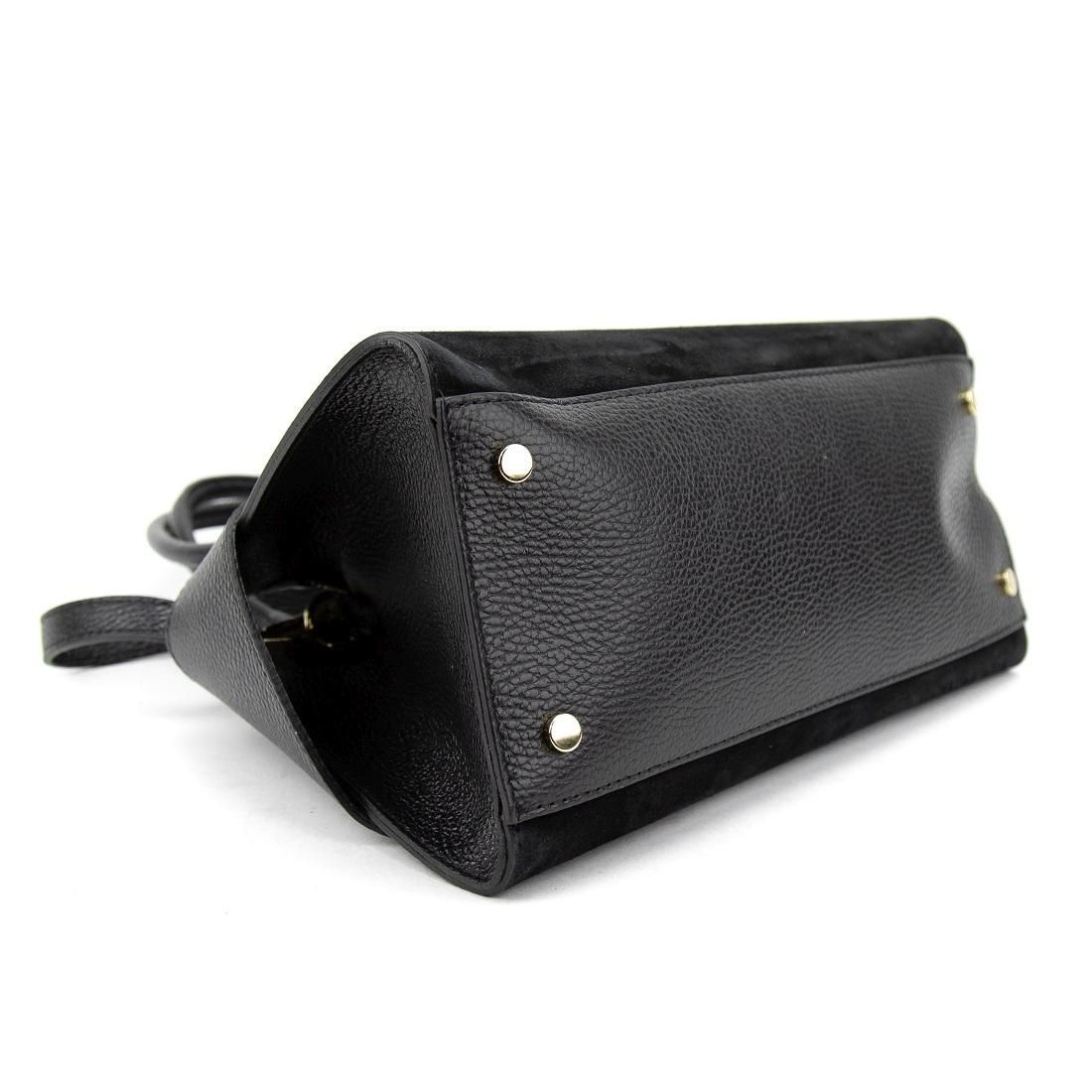 Виконана з натуральної замші без підкладки — мінімалістичний та акуратний внутрішній простір. Колір виробу — чорний, фурнітура — золота, що створює елегантний контраст.