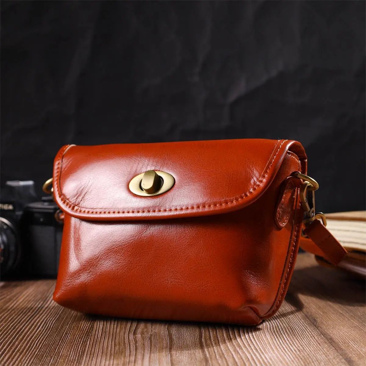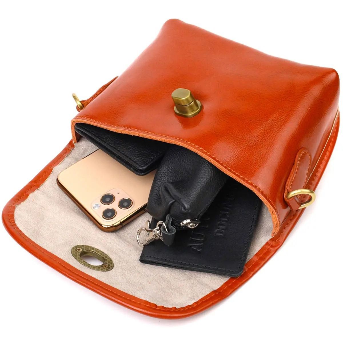 Сумка женская из натуральной кожи кросс-боди 22091 Vintage рыжая