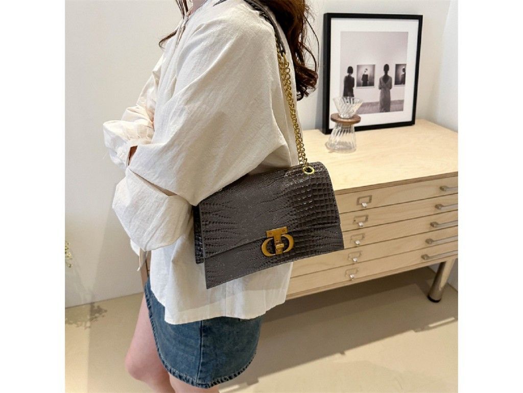 Сумочка на ланцюжку каркасна через плече Lilly P4-6536G сіра