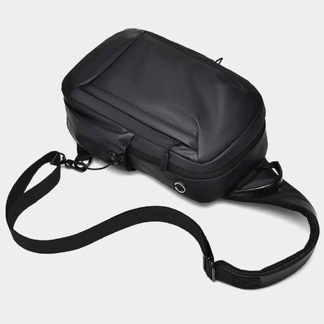 Текстильна сумка слінг чорного кольору ATN02-S039A в чорному кольорі з вологовідштовхувальними властивостями. Розміри виробу: 18 x 9 x 30 см. Сумка має одне основне відділення на блискавці всередині яких є додаткові слоти для дрібних предметів. З лицьового боку розташована вертикальна кишеня на блискавці. Є коротка ручка для комфортного перенесення в руках і вихід для навушників. Довгий ремінець через плече може бути перестебнутий за допомогою карабінів, даючи вам змогу вибрати, з якого боку носити сумку залежно від ваших уподобань. Підкладка: текстиль. Колір: чорний. Колір фурнітури: чорний