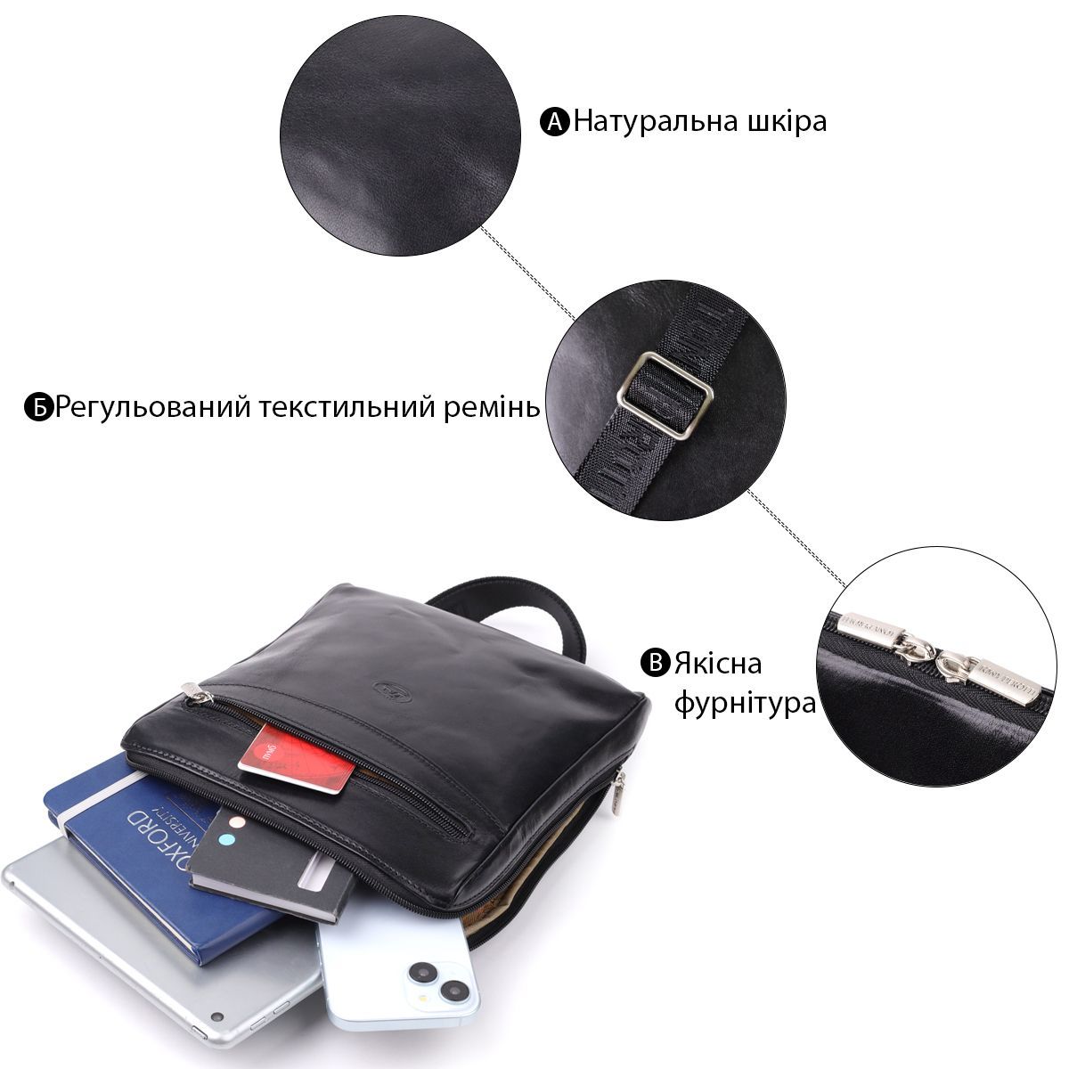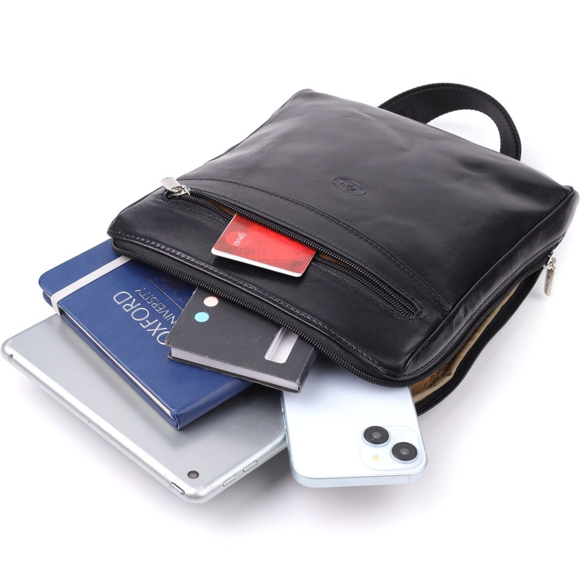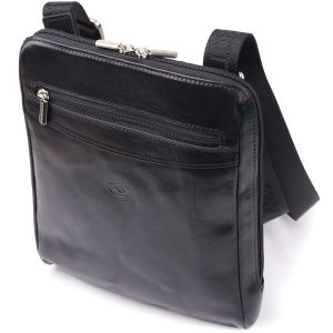 Цікава чоловіча сумка через плече з гладкої натуральної шкіри Tony Perotti 20855_1 (9137-20 nero) чорна