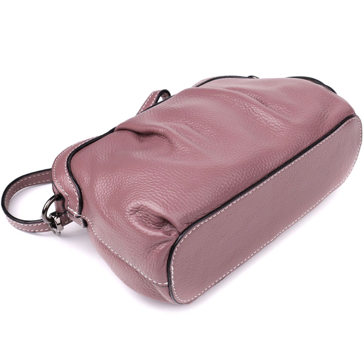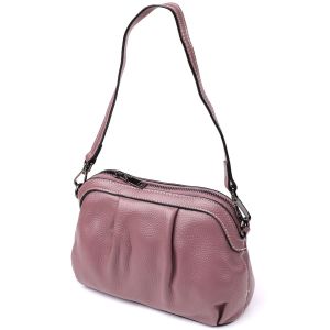 Цікава жіноча шкіряна сумка з ефектним драпіруванням Vintage 22898 пурпурна