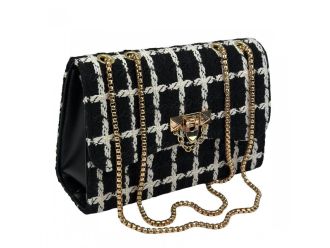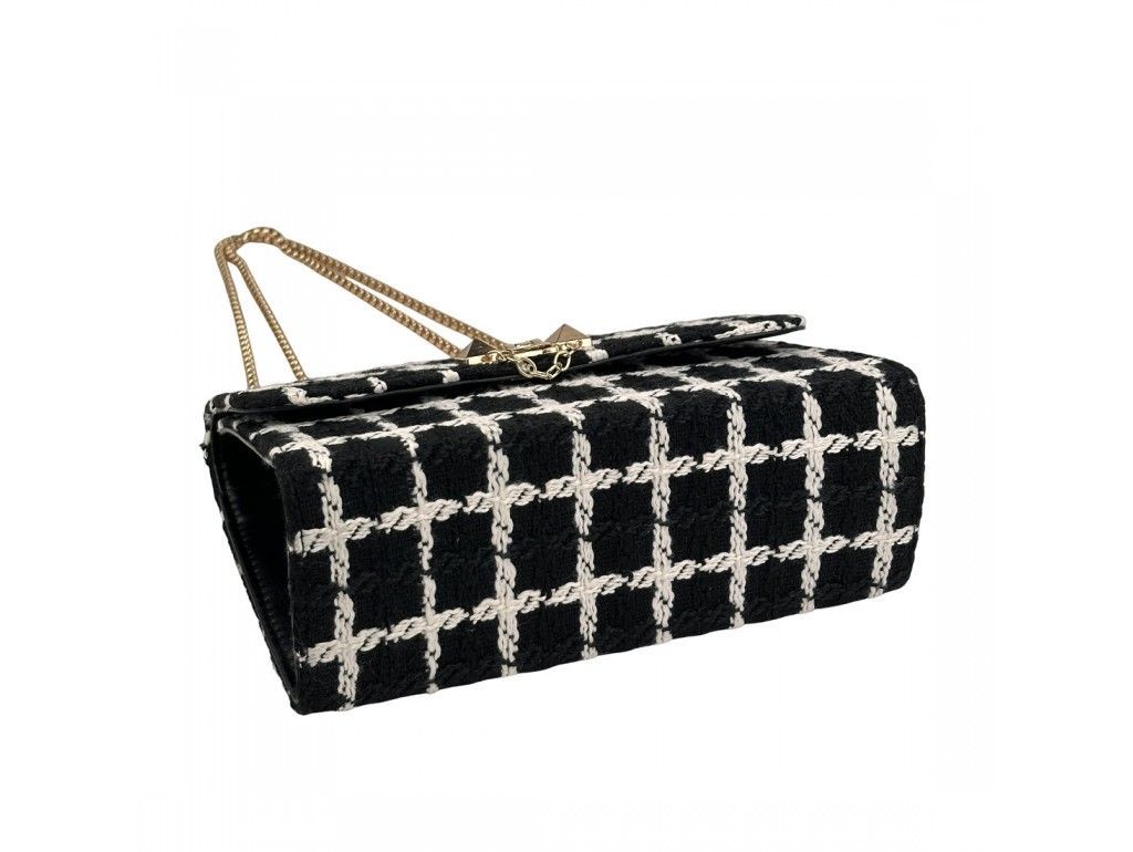 Твідова сумка на ланцюжку з клапаном Lilly P2-1401-1AW чорно-біла
