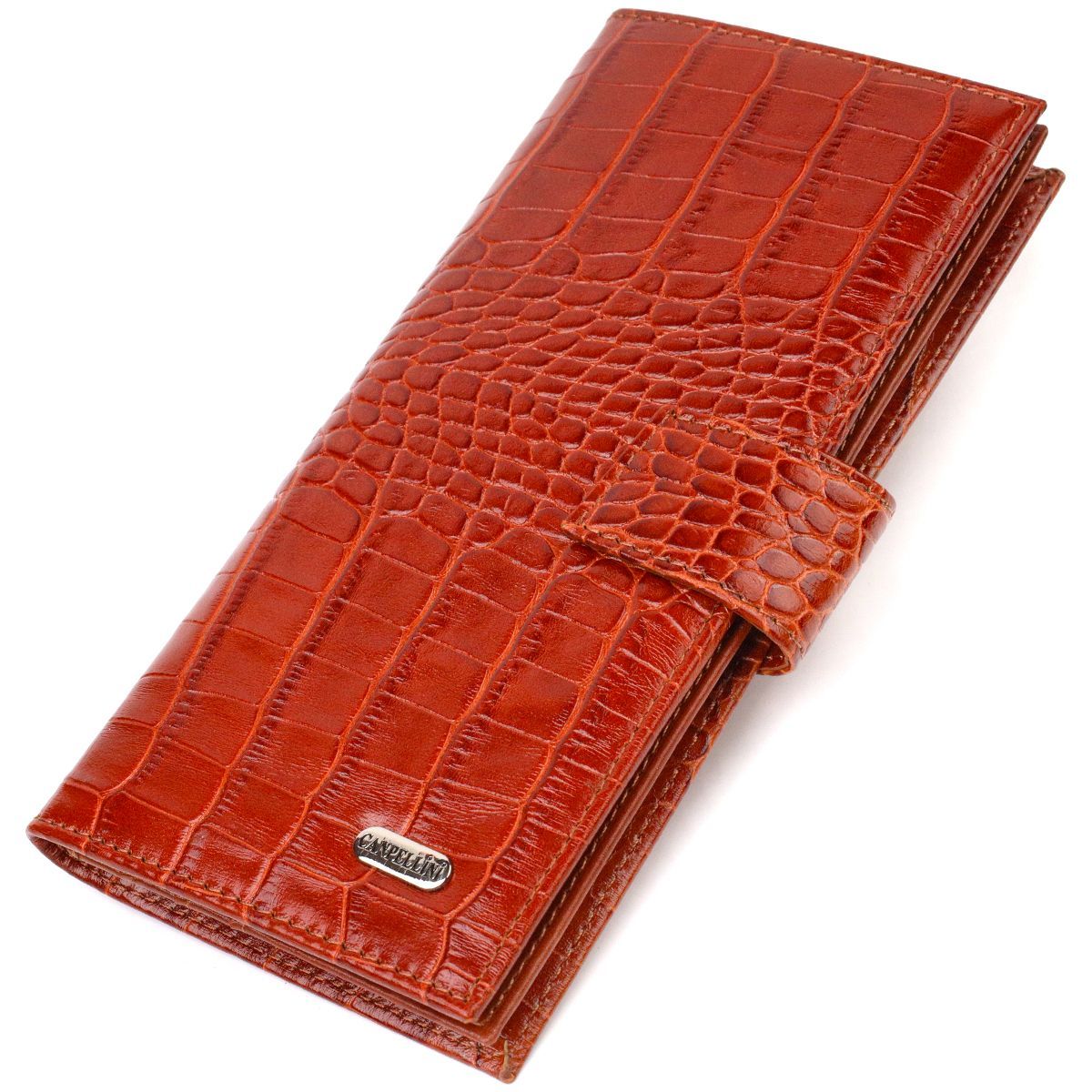Ультрамодный кошелек для мужчин из натуральной кожи с тиснением под крокодила Canpellini 21918 рыжий