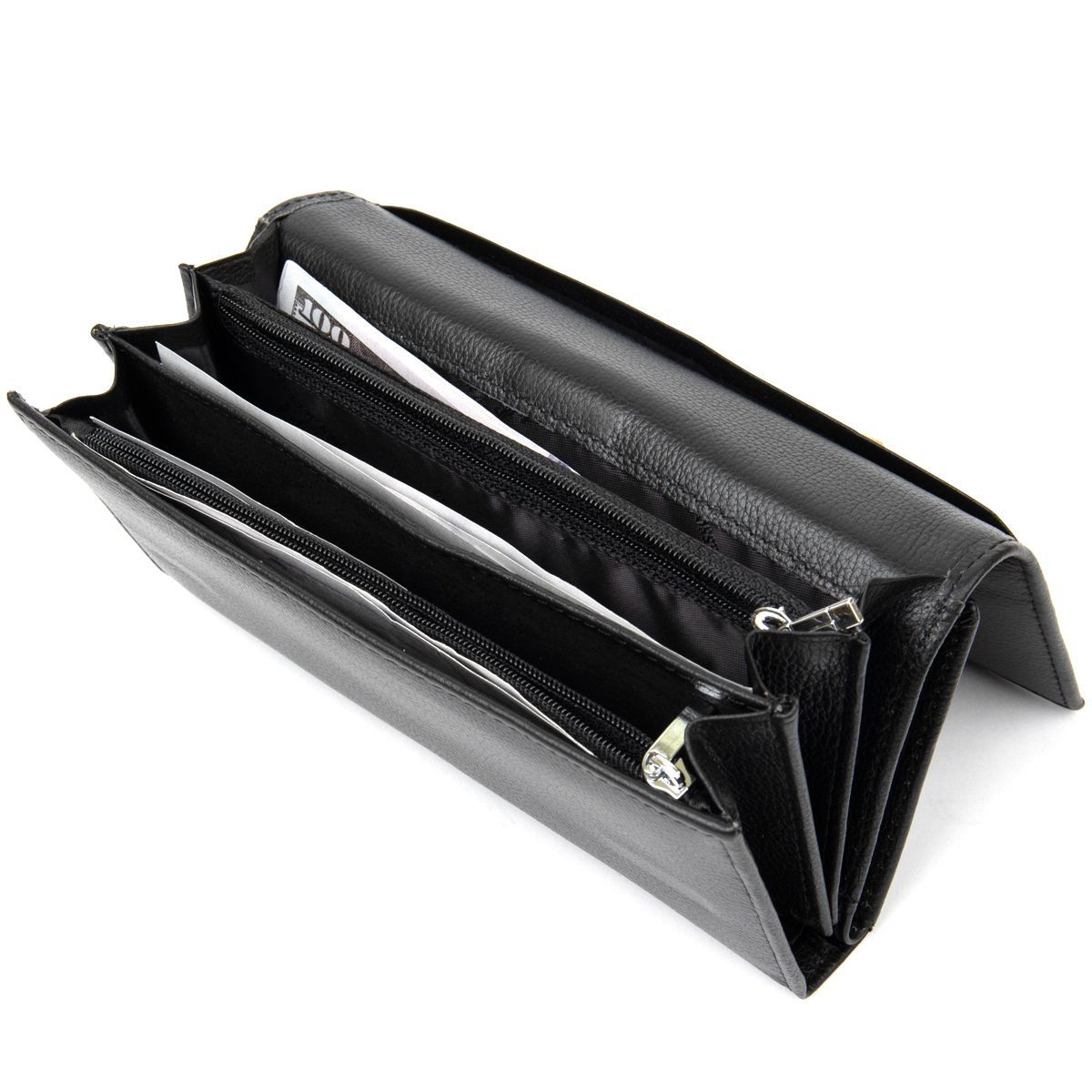- внутри расположены четыре больших отделения для купюр по всей длине;
